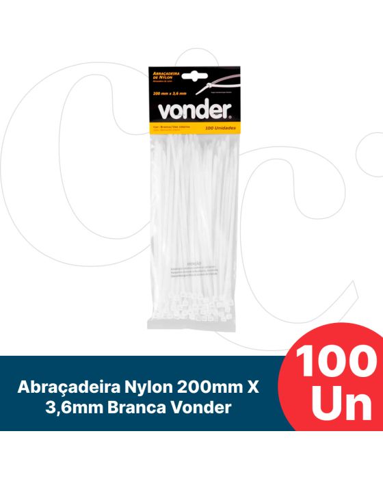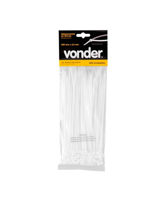 Abracadeira Nylon 200mm X 3,6mm Branca C/ 100 Vonder