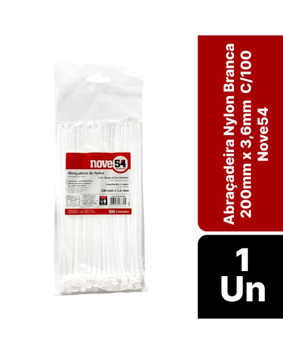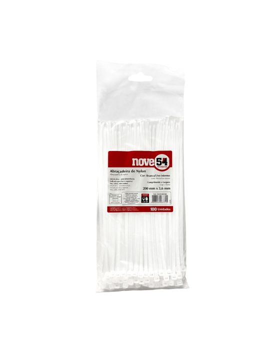 Abracadeira Nylon Branca 200mm X 3,6mm C/100 Nove54