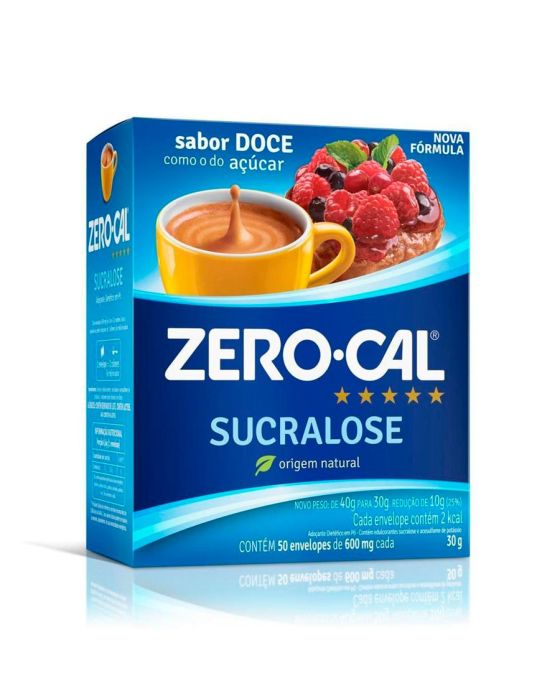 Caracteristicas:É o único edulcorante extraído da cana-de-açúcar, por isso seu sabor é tão parecido com o do açúcar. Pode ser usado em qualquer temperatura, pois não perde o seu poder de dulçor.Detalhes:- Marca: Zero-Cal.- Modelo: Sucralose.- Linha: Adoçante.- Sabor: Doce.- Peso Líquido Saches: 6g (600mg).- Peso Líquido Embalagem:- Contém: 1 caixa com 50 envelopes.- Seus valores diários podem ser maiores ou menores dependendo de suas necessidades energéticas.- Experimente também com Cipirinha e drinks sem álcool.- 1 Sache de Adoçante em pó Sucralose Saches 6g ZERO CAL é equivalente a duas colheres de açúcar.Informações Nutricionais:- - Porção de 600mg (1 envelope): Valor energético 2kcal = 8kJ (0% VD*). Carboidratos 6g.- Não contém quantidade significativa de proteínas, gorduras totais, gorduras saturadas, gorduras trans, fibra alimentar e sódio. *% Valores Diários de referência com base em uma dieta de 2.000 kcal ou 8.400 kJ.Ingredientes:- Lactose, Edulcorante: Sucralose e Acesulfame-K e Antiumectante: Dióxido de Silício.ALÉRGICOS: CONTÉM DERIVADO DE LEITE. NÃO CONTEM GLÚTEN. CONTÉM LACTOSE.* As especificações podem ser alteradas sem aviso prévio ** Imagem meramente ilustrativa.