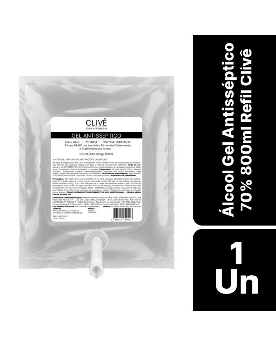 Alcool Gel Antisseptico 70% 800ml Refil Clive 61582