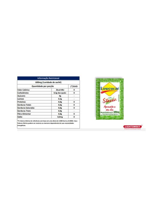 Características:O Adoçante Lowçucar Plus com Stevia Sachê 0,6g é a ultima geração de adoçantes com a fórmula multi, que combina perfeitamente 3 edulcorantes (Glicosídeos de Steviol, Sacarina e Ciclamato) em um só adoçante, proporcionando muito mais sabor, menos gosto residual eu um menor nível de ingestão individual de edulcorantes por dose utilizada.Detalhes:- Marca: Lowçucar.- Tipo: Com Stevia.- Linha: Adoçante Sachê.- Peso Líquido: 600mg.- Quantidade por caixa: 1000 sachês.- Aprovado pela ANAD: Indicado para todos, inclusive gestantes e diabéticos.- Validade: 36 meses.- Alérgicos: Contém 0,5g de Lactose/sachê.Apenas 2kcal/sachê.Quem pode usar:- É um adoçante dietético em pó que serve para todas as pessoas de qualquer idade.Onde pode usar:- Pode ser utilizado não só em cafés, sucos e chás, mas também para preparar bolos, sobremesas, tortas, doces e tudo o que você faria com açúcar.Modo de usar:- Adicionar a bebidas e preparações diversas de sua preferência como substituto do açúcarIngredientes:- Ingredientes: Lactose. Edulcorantes Artificiais Ciclamato de Sódio e Sacarina Sódica. Edulcorantes Naturais Glicosídeos de Steviol. Antiumectante Dióxido de Silício.ALÉRGICOS: CONTÉM DERIVADOS DE LEITE. NÃO CONTÉM GLÚTEN.- Registro no MS (Ministério da Saúde): Dispensado de registro segundo a Resolução RDC nº27 de 06 de agosto de 2010* As especificações podem ser alteradas sem aviso prévio ** Imagem meramente ilustrativa