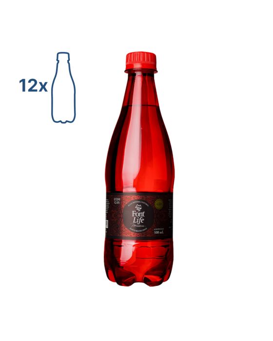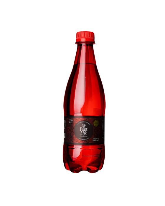 Características:Momentos marcantes pedem Premium!Eleve a experiência do seu restaurante com a Font Life Premium, trazendo sofisticação e qualidade para cada refeição, e ainda possui um design com detalhes incríveis e com maior elegância, oferecendo toque de classe para momentos especiais!Detalhes:- Marca: Font Life;- Modelo: Premium;- Linha: Água Mineral;- Tipo: Com gás;- Cor: Incolor;- Cor da garrafa: Vermelha;- Volume: 500ml;- Contém: 1 unidade do produto;- Fonte: Riacho Doce (Quintandinha/PR);Indústria Brasileira. | Validade: 08 meses a partir da data de envase.Classificação:- Água Mineral Fluoretada e radioativa na fonte.Especificações:- pH a 25°C: 6,55;- Temperatura da água na fonte: 19,0°C;- Condutividade a 25 ºC: 85,3 µS/cm;- Resíduo de evaporação a 180 ºC, calculado: 85,50 mg/L;- Radioatividade na fonte: 20°C e 760 mmHg 15,45 Maches.Composição (mg/L):- Bicarbonato: 42,12 / Sódio: 6,808 / Cálcio: 5,971 / Nitrato: 4,04 / Potássio: 3,598 / Cloreto: 2,57 / Magnésio: 2,088 / Sulfato: 0,70 / Fosfato: 0,44 / Estrôncio: 0,166 / Bário: 0,100 / Fluoreto: 0,08.Conservação:- Conservar ao abrigo do sol, em local limpo, seco, arejado e sem odor.- Não congelar.NÃO CONTÉM GLÚTEN.* As especificações podem ser alteradas sem aviso prévio ** Imagem meramente ilustrativa.