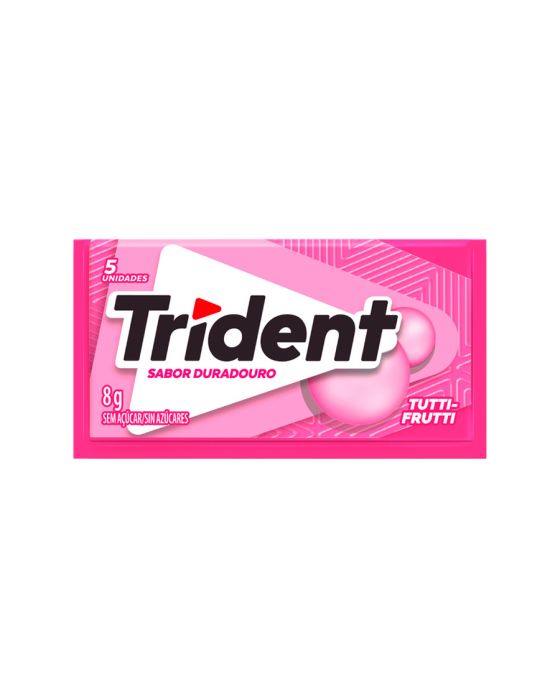 CaracterísticasO Trident Tutti-Frutti tem um sabor refrescante e sem adição de açúcares, esteja com seu hálito sempre fresco e sua saúde em dia.- Sabor: Tutti-Frutti- 8g (5 unidades)- Zero açúcaresIngredientes: Goma base. edulcorantes: sorbitol, manitol, aspartame, acesulfame-k e sucrolose. umectantes: clicerina e triacetina. aromatizantes. emulsificante. lecitina de soja. corante artifical: vermelho 40.ALÉRGICOS: Contém derivados de trigo e soja. Contém glúten. Contém fenilalanina.* As especificações podem ser alteradas sem aviso prévio** Imagem meramente ilustrativa.