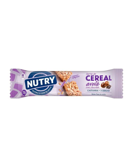Caracteristicas:Além de nutritivas e práticas, as Barras de Cereal Nutry vão bem na mochila, no bolso ou no carro e são fáceis de encontrar pelo caminho. Conte com Nutry para nutrir o que te move ao longo do dia!- Sabor: Avelã com chocolate- Peso: 22g- Calorias: 88kcalIngredientes: cereais (aveia e flocos de cereais), glicose de milho, cobertura sabor chocolate, açúcar mascavo, açúcar invertido, gordura vegetal, pasta de avelã, corante caramelo IV, antioxidante lecitina de soja e aromatizante.CONTÉM GLÚTEN. CONTÉM LACTOSE.ALÉRGICOS: contém aveia, avelã, leite e derivados de cevada e de soja. pode conter amêndoa, amendoim, castanha-de-caju, castanha-do-brasil, centeio, látex natural, macadâmia, nozes, pecãs, pistache e derivados de trigo.* As especificações podem ser alteradas sem aviso prévio ** Imagem meramente ilustrativa