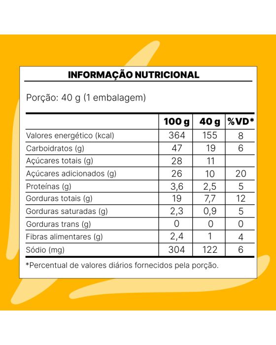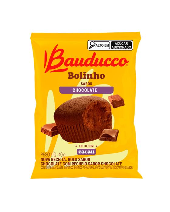 Características:Já pensou em deixar o seu lanche do dia a dia ainda mais saboroso?Com a nova receita, o bolinho Bauducco Chocolate tem uma massa super fofinha, e é uma fonte de vitaminas e cálcio, ideal para as crianças levarem na lancheira para a escola ou para os adultos que estão sempre em movimento e precisam de um lanche rápido e prático!Detalhes:- Marca: Bauducco;- Linha: Bolinhos;- Sabor: Chocolate;- Tipo: Porção individual;- Peso: 40g;- Contém: 1 unidade do produto;- Feito com cacau;- Não possui recheio;- Nova receita.Indústria Brasileira. | Validade: Impresso na embalagem do produto.Ideal para:- Ideal para o lanche da manhã ou da tarde em hospitais, clínicas de saúde, estética e odontologia, refeitórios empresariais e ambientes corporativos.Conservação:- Mantenha em local seco, fresco e inodoro;- Conservar longe Da Umidade;- Conservar fora do abrigo do calor, temperatura AmbienteIngrediente:- Açúcar, Farinha de trigo enriquecida com ferro e ácido fólico, Óleo de canola, Ovo integral, Leite em Pó integral, Cacau em Pó, Sal, Fermento químico (DifosfatoDissódigo, bicarbonato de sódio, e fosfato monocálcico), Aromatizantes e conservadores: Propionato de cálcio, Sorbato de cálcio e ácido sórbico e emulsificante: Mono e Diglicerídeos ácidos Graxos.Medidas:- Dimensões da embalagem: 10 x 7,8 x 3,5cm (CxLxA);- Peso: 40g.ALÉRGICOS: CONTÉM OVOS, DERIVADOS DE LEITEM SOJA, E DE TRIGO. PODE CONTER AMÊNDOAS, AMENDOIM, AVEIA, AVELÃS, CASTANHA-DE-CAJU, CASTANHA-DO-PARÁ, CENTEIO, CEVADA E PISTACHE.CONTÉM GLÚTEN. CONTÉM LACTOSE.* As especificações podem ser alteradas sem aviso prévio ** Imagem meramente ilustrativa.