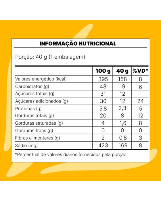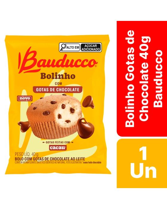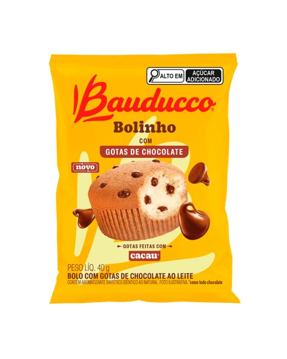 Características:Já pensou em deixar o seu lanche do dia a dia ainda mais saboroso?Com a nova receita, o bolinho Bauducco Gotas de Chocolate tem uma massa super fofinha, e é uma fonte de vitaminas e cálcio, ideal para as crianças levarem na lancheira para a escola ou para os adultos que estão sempre em movimento e precisam de um lanche rápido e prático!Detalhes:- Marca: Bauducco;- Linha: Bolinhos;- Sabor: Gotas de Chocolate;- Tipo: Porção individual;- Peso: 40g;- Contém: 1 unidade do produto;- Feito com cacau;- Nova receita.Indústria Brasileira. | Validade: Impresso na embalagem do produto.Ideal para:- Ideal para o lanche da manhã ou da tarde em hospitais, clínicas de saúde, estética e odontologia, refeitórios empresariais e ambientes corporativos.Conservação:- Mantenha em local seco, fresco e inodoro;- Conservar longe Da Umidade;- Conservar fora do abrigo do calor, temperatura AmbienteIngrediente:- Açúcar, Farinha de Trigo Enriquecida com Ferro e Ácido Fólico, Ovo Integral, Óleo de Canola, Gotas de Chocolate Ao Leite (Açúcar, Massa de Cacau, Gordura Vegetal, Cacau em Pó, Manteiga de Cacau, Leite em Pó Integral, Permeado de Soro de Leite, Soro de leite em Pó, Emulsificantes: Lecitina de Soja e Poliglicerol Polirricinoleato e Aromatizantes), Leite em Pó Integral, Sal, Fermento em Pó Químico (Difosfato Dissódico, Bicarbonato de Sódio e Fosfato Monocálcico), Conservadores: Propionato de Cálcio, Sorbato de Potássio e Ácido Sórbico, Emulsificante: Mono e Diglicerídeos de Ácidos Graxos e Aromatizantes.Medidas:- Dimensões da embalagem: 10 x 7,8 x 3,5cm (CxLxA);- Peso: 40g.ALÉRGICOS: CONTÉM OVOS, LEITE E DERIVADOS E DERIVADOS DE SOJA E DE TRIGO. PODE CONTER: AMÊNDOAS, AMENDOIM, AVEIA, AVELÃS, CASTANHA-DE-CAJU, CASTANHA -DO-PARÁ, CENTEIO, CEVADA E PISTACHE.CONTÉM GLÚTEN. CONTÉM LACTOSE.* As especificações podem ser alteradas sem aviso prévio ** Imagem meramente ilustrativa.