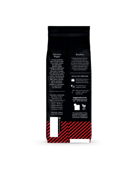 Características:O Baggio Café Especial Bourbon é um café especial artesanal. Torrado artesanalmente, possui um paladar definido, com acidez sutil, para apreciadores desta variedade. Apresenta notas gustativas marcantes, corpo e doçura muito presente.Detalhes:- Marca: Baggio Cafés;- Linha: Cafés;- Variedade: Especial Moído Bourbon;- Tipo: Moído;- Peso: 250g;- Origem: Mogiana Paulista e sul de Minas Gerais;- Contém: 1 unidade do produto;- Tipo de grão: 100% Arábica.Corpo: - Aroma: Frutas secas;- Corpo: Delicado;- Sabor: Tenro;- Moagem: Média;- Torra: Média;- Bebida: Mole.Dicas de preparo:- Após aberto, conservar em local fresco, seco e arejado por até 30 dias;- Uso indicado para máquinas e filtros;- Para cada copo de água (150ml), 1 colher de sopa de café.Ingredientes:- Café torrado moído.ALÉRGICOS: NÃO CONTÉM LACTOSE. NÃO CONTÉM GLÚTEN. NÃO CONTÉM AÇÚCAR. NÃO CONTÉM LEITE E DERIVADOS. * As especificações podem ser alteradas sem aviso prévio ** Imagem meramente ilustrativa.
