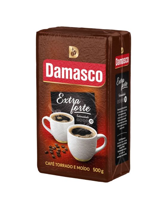 Caracteristicas:Damasco Intenso, apresenta sua versão Extra Forte que combina o aroma e o sabor do café arábica,a fortidão do robusta, em uma torra acentuada, de uma rigorosa seleção de grãos procedentes das principais regiões produtoras de café do Brasil.Caracteristicas:- Marca: Damasco- Peso: 500g- Grau de intensidade: Extra Forte- Pacote a Vácuo- Fabricante: JDE CafésGraus de intensidade dos Blends Damasco- Clássico apresenta grau 7- Intenso Apresenta grau 9- Extraforte Apresenta Grau 10* As especificações podem ser alteradas sem aviso prévio ** Imagem meramente ilustrativa.