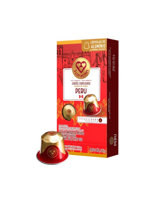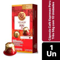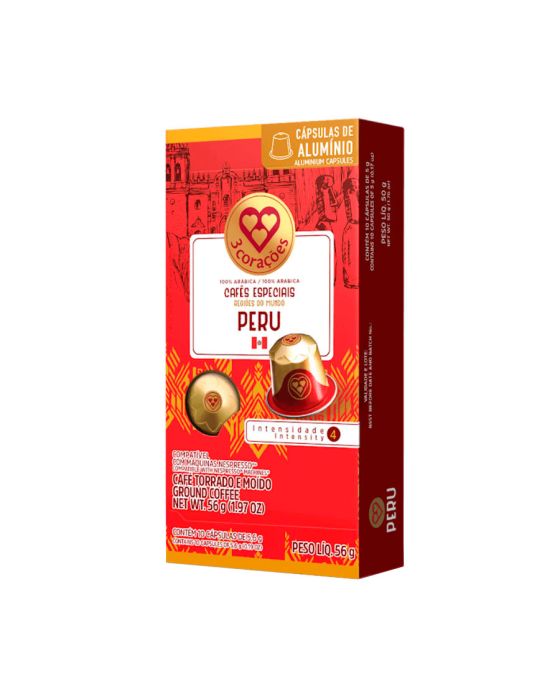 Características:- Café 100% arábica de origem controlada: As cápsulas Espresso Peru da Três Corações trazem a autenticidade dos grãos cultivados na região de San Martín, no leste dos Andes peruanos, entre 1.400 e 1.900 metros de altitude. Reconhecida pela alta qualidade na produção cafeeira, a região representa cerca de 25% do café peruano, oferecendo um blend com características sensoriais únicas e refinadas.- Perfil sensorial equilibrado com baixa acidez: O espresso Peru apresenta corpo cremoso e notas marcantes de caramelo, cacau, toques torrados e um leve fundo de especiarias. O aroma é adocicado e a acidez baixa, resultando em uma bebida suave, elegante e de intensidade 4, ideal para quem aprecia cafés menos intensos e com finalização delicada.- Quantidade por embalagem: Cada embalagem contém 10 cápsulas individuais de 5,6 g, totalizando 56 g de café torrado e moído.- Compatibilidade: As cápsulas são fabricadas em alumínio e compatíveis exclusivamente com máquinas do sistema original Nespresso®. - Sobre a Três Corações: Com foco na qualidade, inovação e sustentabilidade, a empresa desenvolve cafés especiais e soluções em cápsulas compatíveis com os principais sistemas do mercado, valorizando a origem e a experiência do consumidor.- Aroma: Adocidaco- Acidez: Média alta- Corpo: Cremoso- Notas sensoriais: Caramelo, torradas cacau e toque de especiarias- Torra: ClaraPeso: 145g.Recicle: Encontre o ponto de entrega mais próximo de você: https://www.escolhatres.com.br/reciclagem/.* As especificações podem ser alteradas sem aviso prévio ** Imagem meramente ilustrativa.