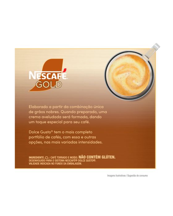 Características:- Café suave e sofisticado para momentos de pausa com excelência: A Cápsula Café Gold Lungo 6 Dolce Gusto® com 10 unidades oferece um espresso suave, aveludado e equilibrado, elaborado com grãos 100% arábica de origem sustentável. Torrados em temperaturas amenas, esses grãos realçam notas frutadas e trufadas, proporcionando uma experiência sensorial refinada e agradável, ideal para quem aprecia cafés mais leves e elegantes.- Sabor refinado com intensidade equilibrada: Com intensidade 6 e torra clara, o NESCAFÉ® GOLD Lungo 6 entrega um perfil aromático delicado, com acidez suave e corpo leve, sem abrir mão da cremosidade e do sabor marcante que caracterizam os cafés premium da linha GOLD. Sua crema consistente e textura aveludada tornam cada xícara uma experiência de sofisticação e prazer.- Praticidade e consistência no preparo: Desenvolvido para uso em máquinas Dolce Gusto® de Geração 1, o produto combina eficiência e qualidade constante, preparando 50 ml de café por cápsula com apenas um toque. Essa padronização é essencial para ambientes corporativos, garantindo bebidas de qualidade superior com agilidade e sem necessidade de treinamento técnico.- Aplicações em ambientes profissionais e corporativos: A Cápsula Café Gold Lungo 6 é ideal para escritórios, consultórios, recepções, salas de reunião, hotéis e espaços de coworking que buscam oferecer uma bebida de alto padrão, com aroma suave e apresentação impecável. Além de reforçar o cuidado com colaboradores e clientes, o café NESCAFÉ® GOLD agrega valor à experiência e transmite uma imagem de sofisticação e atenção aos detalhes.- Compromisso com sustentabilidade e qualidade premium: Cada cápsula é produzida com grãos arábica de origem sustentável, reafirmando o compromisso da NESCAFÉ® com práticas responsáveis e rastreabilidade da cadeia produtiva. A torra clara, cuidadosamente controlada, preserva as características naturais do café, destacando suas notas aromáticas e garantindo um sabor puro e equilibrado.- Sobre a marca NESCAFÉ®: A NESCAFÉ®, marca pertencente à Nestlé e líder global em cafés, é reconhecida pela tradição, inovação e qualidade de seus produtos.- Ingredientes: Café torrado e moído.- Informação nutricional e alergênicos:Não contém Lactose. Não contém Glúten.- Dimensões da embalagem: Comprimento: 11,2cm; Largura: 10,7cm; Altura: 10cm; Peso: 680g.* As especificações podem ser alteradas sem aviso prévio ** Imagem meramente ilustrativa.