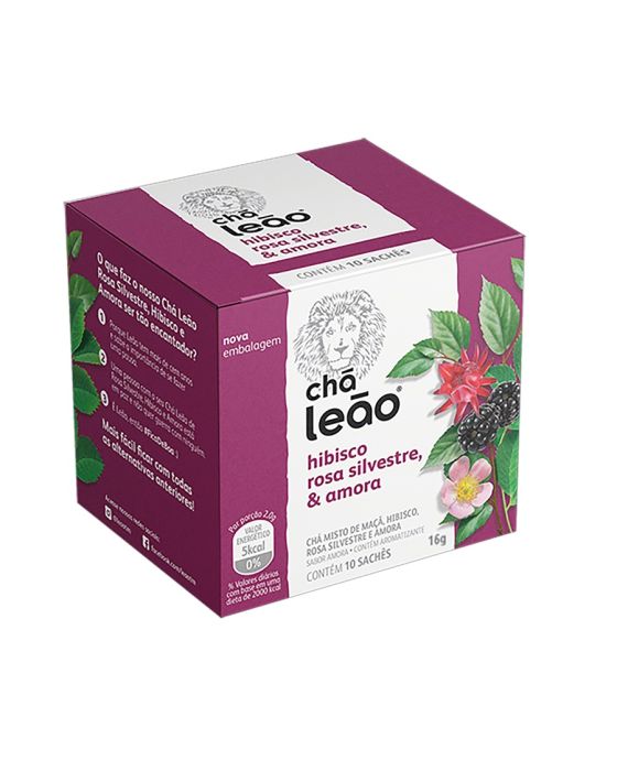 Caracteristicas:A linha de Frutas e Flores da Leão possui a combinação de aromas e sabores, pensados especialmente para quem gosta de ter uma experiência diferente na hora de beber seu chá!Detalhes:- Marca: Leão.- Sabor: Leão Hibisco/ Rosa Silvestre e amora.- Linha: Chá Premium.- Peso Caixa: 16g.- Embalagem com 10 sachês.- Saquinhos: Cada saquinho tem 1,6g de chá cada.- Porção: Porção de 1,6 (1 sachê).- Carboídratos: Contém 0,7g por Porção (1 sachê).- Os chás não possuem quantidade significativa de valor energético, proteínas, gorduras totais, gorduras saturadas, gorduras trans, fibra alimentar e sódio.- Chás são envelopados individualmente.- Ervas naturais.Ingredientes:- FRUTOS DE MAÇÃ (Pyrus malus L.) FLORES DE HIBISCO (Hibiscus sabdariffa L.) FLUTOS E FLORES DE ROSA SILVESTRE (Rosa canina L.) FRUTOS DE AMORA (Rubus spp) AROMATIZANTE.Modo de prepraro:- Despeje água quente (a 90C) em uma xícara de 240ml.- Coloque o sachê e deixe em infusão em 5 minutos.- Adoce se preferir.- Após o preparo, consumir imediatamente.Conservação:- Conservar ao abrigo do Sol e Calor em local limpo, seco, arejado e sem odor.Importante!- Utilize água filtrada.- Consumir imediatamente após preparo ou guardar por no máximo 8 horas em recipiente limpo e sob refrigeração.- Usar a quantidade indicada de água é importante para garantir uma melhor experiência.- Não contém glúten.* As especificações podem ser alteradas sem aviso prévio ** Imagem meramente ilustrativa.