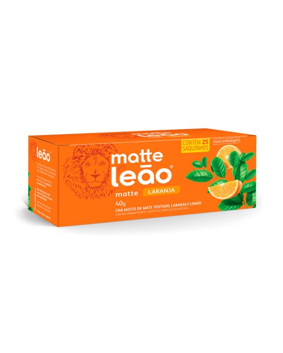 Caracteristicas:Matte Leão Laranja tem sabor de Brasil. É preparado a partir das folhas da erva-mate, planta nativa, especialmente selecionadas e tostadas para resultar em uma bebida revigorante, saborosa, de característica única e inigualável.Tome emprestada toda a delicadeza e suavidade encontradas no pêssego e obtenha a equilibrada harmonia entre os sabores da erva e da fruta. Matte Leão, o autêntico sabor do mate, conecta você às raízes do Brasil.Detalhes:- Marca: Leão.- Sabor: Laranja.- Linha: Chá.- Peso Caixa: 40g.- Embalagem com 25 sachês.- Saquinhos: Cada saquinho tem 1,6g de chá cada.- Porção: Porção de 1,6g (1 sachê).- Os chás não possuem quantidade significativa de valor energético, carboidratos, proteínas, gorduras totais, gorduras saturadas, gorduras trans, fibra alimentar e sódio.- Chás NÃO são envelopados individualmente.- Ervas naturais.Ingredientes:- FOLHAS DE MATE TOSTADO (llex paraguariensis St. Hil), CASCAS DE LARANJA-DOCE (Citrus sinenses Osbeck), CASCAS DE LIMÃO-DOCE (Citrus Limonium Risso) e AROMATIZANTE.Modo de prepraro:- Despeje água quente (a 90C) em uma xícara de 240ml.- Coloque o sachê e deixe em infusão em 5 minutos.- Adoce se preferir.- Após o preparo, consumir imediatamente.Conservação:- Conservar ao abrigo do Sol e Calor em local limpo, seco, arejado e sem odor.Importante!- Utilize água filtrada.- Consumir imediatamente após preparo ou guardar por no máximo 8 horas em recipiente limpo e sob refrigeração.- Usar a quantidade indicada de água é importante para garantir uma melhor experiência.- Não contém glúten.* As especificações podem ser alteradas sem aviso prévio ** Imagem meramente ilustrativa.