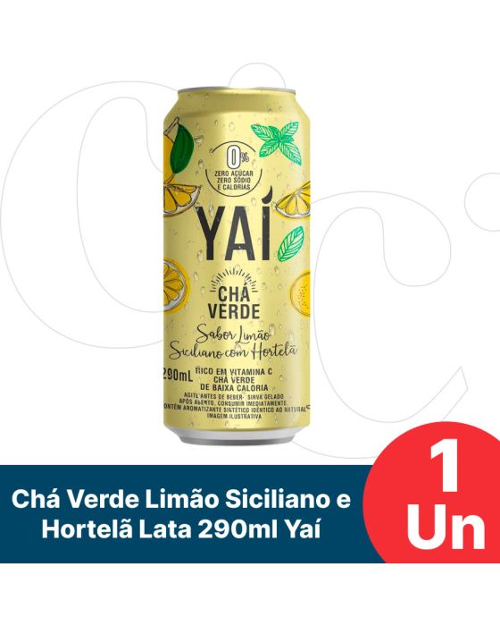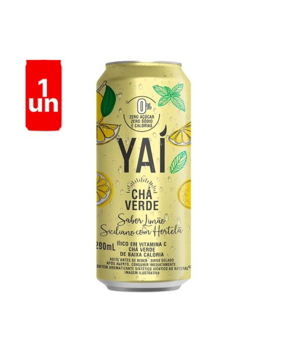Características:- Chá verde com limão siciliano e hortelã em formulação refrescante sem adição de açúcar: A combinação do chá verde com a acidez aromática do limão siciliano e o toque refrescante da hortelã resulta em uma bebida leve, revitalizante e sem adição de açúcar, indicada para quem busca hidratação aliada a bem-estar.- Embalagem individual prática para consumo imediato: A lata de 290 ml garante praticidade no transporte e no consumo diário, sendo ideal para levar em bolsas, mochilas ou lancheiras. Seu formato individual facilita o uso em diferentes momentos do dia, preservando o sabor e a qualidade da bebida.- Bebida funcional com ação antioxidante e estímulo à disposição: O chá verde atua como fonte natural de antioxidantes, contribuindo para o fortalecimento do sistema imunológico, melhora da concentração e aumento da energia. O limão siciliano agrega compostos antioxidantes e notas cítricas marcantes, enquanto a hortelã potencializa a sensação de frescor e leveza no consumo.- Indicado para rotinas saudáveis e consumo diário: Versátil, o Chá Verde Yaí Limão Siciliano com Hortelã pode ser consumido no trabalho, em ambientes de estudo, antes ou após atividades físicas ou como alternativa saudável a bebidas açucaradas. É indicado para quem busca hidratação contínua, energia natural e suporte a um estilo de vida equilibrado.- Sobre a marca Yaí: A Yaí é uma marca focada no desenvolvimento de bebidas modernas, funcionais e alinhadas a um estilo de vida saudável.- Ingredientes: Água, extrato de chá verde (Camellia sinensis), aroma natural de limão siciliano e hortelã, acidulante ácido cítrico, conservadores benzoato de sódio e sorbato de potássio, edulcorante sucralose.- Informação nutricional e alergênicos:Não contém glúten. Não contém lactose.- Dimensões do produto: Comprimento: 6cm;Largura: 6cm;Altura: 14,5cm;Peso: 252g.* As especificações podem ser alteradas sem aviso prévio ** Imagem meramente ilustrativa.