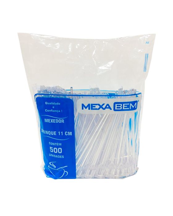 Características:O mexedor Mexa Bem é a opção ideal para quem adora aquele cafezinho em qualquer momento do dia, fabricado em poliestireno cristal, é um produto ideal para escritórios, copas, salas de reunião, restaurantes, lanchonetes e padarias.Detalhes: - Marca: Mexa Bem;- Modelo: Drink;- Linha: Mexedor; - Cor: Transparente;- Para: Drinque;- Tamanho: 11cm;- Quantidade: 500 unidades;- Contém: 1 unidade com 500 unidades;- Qualidade e Confiança.Indústria Brasileira | Validade Indeterminada.Ideal para:- Ideal para uso em escritórios, salas de reuniões, copa, restaurantes, lanchonetes, cafeterias e demais ambientes.Composição:- Poliestireno cristal e pigmentos atóxicos Medidas:- Dimensões: 8,7 x 3 x 13,5cm (CxLxA)MANTENHA FORA DO ALCANCE DAS CRIANÇAS.* As especificações podem ser alteradas sem aviso prévio** Imagem meramente ilustrativa.