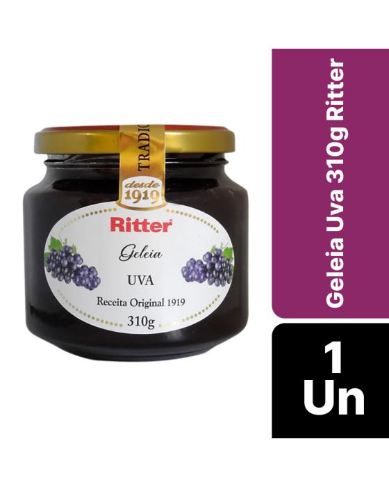 Características:- Geleia tradicional de uva com formulação clássica e sabor autêntico: A Geleia de Uva Ritter 310 g é elaborada a partir de uma receita tradicional que preserva o sabor natural da fruta, oferecendo uma textura equilibrada e um perfil doce característico da uva. - Textura uniforme e praticidade para o consumo cotidiano: Com fácil espalhabilidade, a geleia apresenta corpo homogêneo e estável, ideal para uso direto sem necessidade de preparo adicional. A embalagem em vidro de 310 g assegura conservação adequada do produto, mantendo sabor e qualidade por mais tempo após aberta, quando armazenada corretamente.- Aplicações versáteis em refeições e preparações culinárias: Indicada para café da manhã, café da tarde e lanches, pode ser utilizada em pães, torradas, bolos, biscoitos, queijos e sobremesas. - Receita original com tradição desde 1919: Produzida com base na Receita Original Ritter de 1919, a geleia mantém o padrão de qualidade que consolidou a marca ao longo de décadas, unindo simplicidade, sabor e confiabilidade em um produto tradicional.- Sobre a marca Ritter: A Ritter Alimentos é uma marca brasileira com mais de um século de história, reconhecida pela produção de geleias, conservas e alimentos de alta qualidade.- Ingredientes: Uva, açúcar, glicose, estabilizante pectinas, acidulante ácido lático, conservante sorbato de potássio e agente de firmeza fosfato tricálcico.- Informação nutricional e alergênicos:Não contém glúten. Não contém lactose.- Dimensões da embalagem: Comprimento: 8,5cm; Largura: 8,5cm; Altura: 8,5cm; Peso: 502g.* As especificações podem ser alteradas sem aviso prévio ** Imagem meramente ilustrativa.