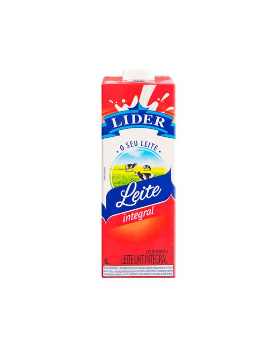 Caracteristicas:O leite UHT Lider Integral 1L é ideal para o dia a dia, pois foi desenvolvido com a máxima qualidade para agradar toda a família. Sua fórmula única possui baixo teor de gordura, além de ser uma ótima fonte de cálcio. Perfeito para saborear uma deliciosa bebida em qualquer momento do dia ou para utilizar no preparo de vários tipos de receitas!Detalhes:- Marca: Lider.- Modelo: Integral.- Linha: Leite UHT.- Volume: 1 litro.- Teor de gordura: 3%.- Com tampa.- Fácil de abrir.- Fácil de servir.- Embalagem reciclável.Ingredientes: - Leite integral e estabilizantes: trifosfato de sódio INS 451 i, Citrato de sódio INS 331 iii, Monofosfato monossódico INS 339 i e pirofosfato dissódico INS 450 i.Conservação: - Mantenha em local seco e arejado. Após aberto conservar sob refrigeração de 1ºC a 10ºC, devidamente tampado e consumir em até 48 horas, observando o prazo de validade impresso na embalagem.- Não necessita ferver para consumir.* ALÉRGICOS: CONTÉM LEITE. CONTÉM LACTOSE.** NÃO CONTÉM GLÚTEN.AVISO: Este produto não deve ser usado para alimentar crianças menores de 1(um) ano de idade, a não ser por indicação expressa de médico ou nutricionista. O aleitamento materno evita infeccções e alergias e deve ser mantido até a criança completar 2(dois) anos de idade ou mais.* As especificações podem ser alteradas sem aviso prévio ** Imagem meramente ilustrativa.