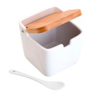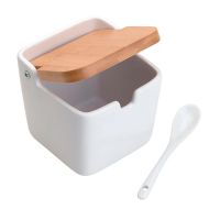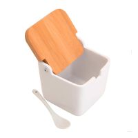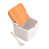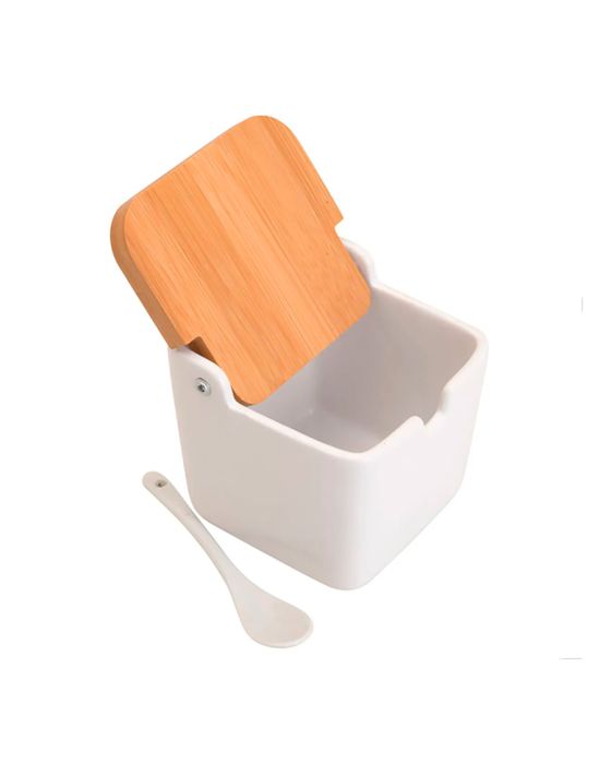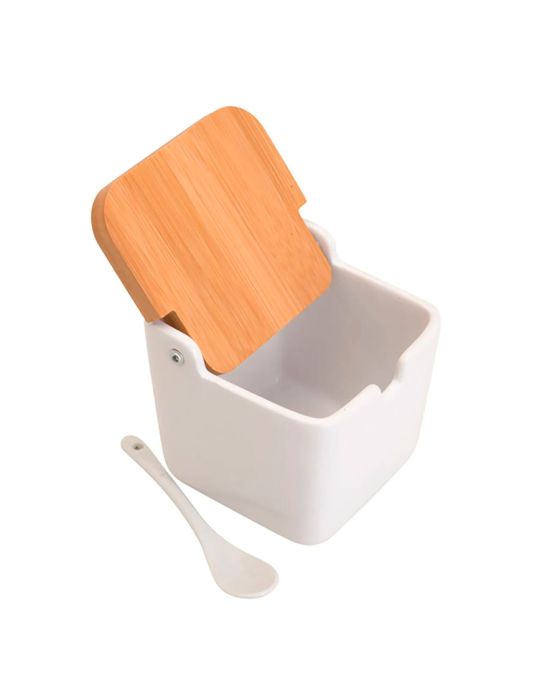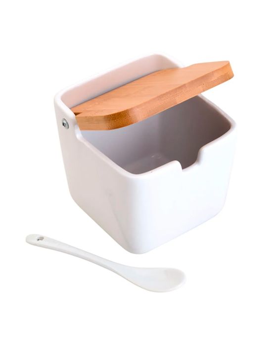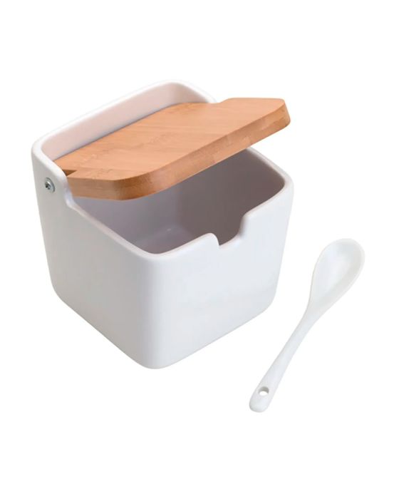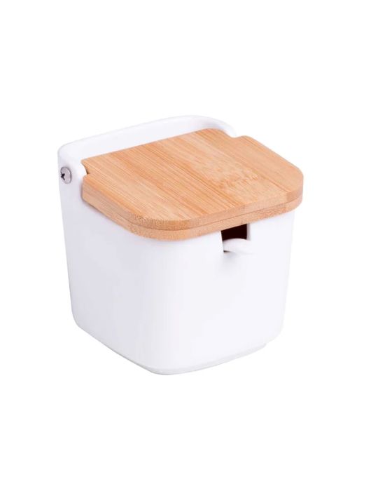 Saleiro De Mesa Ceramica C/ Tampa De Bambu E Colher Bianco 9x8,5cm Lyor Www
