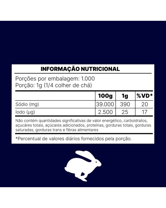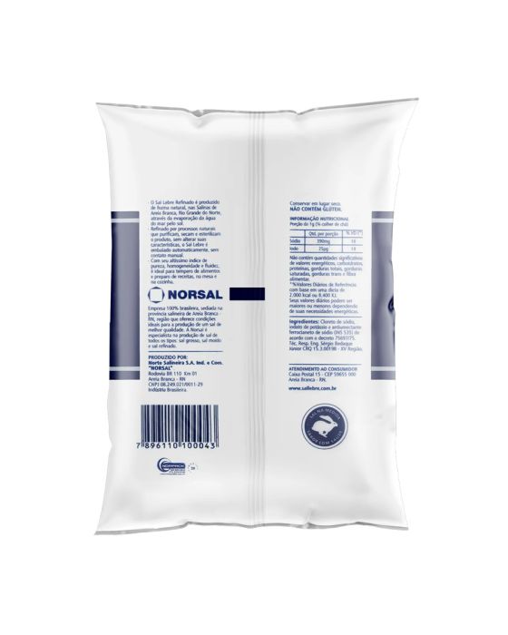 Características:- Pureza e tradição em cada grão: O Sal Refinado Lebre 1kg é produzido de forma natural nas salinas de Areia Branca (RN), uma das regiões mais reconhecidas pela qualidade do sal marinho brasileiro. Seu processo de obtenção ocorre por evaporação solar da água do mar, preservando os minerais essenciais e garantindo um produto de alta pureza. Após a colheita, o sal passa por refino e esterilização natural, resultando em cristais finos, secos e uniformes, ideais para o uso diário.- Composição e qualidade: Trata-se de um sal marinho refinado e iodado, enriquecido com 15 mg a 45 mg de iodo por quilograma, conforme as normas sanitárias vigentes, contribuindo para o bom funcionamento da tireoide e para uma alimentação equilibrada. O produto é embalado automaticamente, sem contato manual, garantindo higiene, segurança e conservação da pureza do sal.- Aplicações e versatilidade: O Sal Refinado Lebre é indicado para uso doméstico e culinário, sendo perfeito para temperar, cozinhar e finalizar pratos. Sua textura fina e homogênea proporciona distribuição uniforme do sabor, sendo ideal tanto para o preparo de receitas quanto para o uso direto na mesa. Além disso, apresenta fluidez natural, o que permite que corra solto no saleiro, sem formar grumos.- Sobre a marca Lebre: Com tradição consolidada na produção de sal marinho, a Lebre é reconhecida pela qualidade, pureza e origem natural de seus produtos.- Ingredientes: Cloreto de sódio, iodato de potássio e antiumectante ferrocianeto de sódio (INS 535).- Informação nutricional e alergênicos:Não contém glúten. Não contém lactose.- Dimensões da embalagem: Comprimento: 18,5cm; Largura: 13cm; Altura: 5cm; Peso: 99g.* As especificações podem ser alteradas sem aviso prévio ** Imagem meramente ilustrativa.