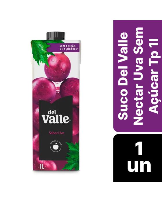 Caracteristicas:Se você busca uma opção deliciosa e sem adição de açúcar para refrescar seus momentos, Del Valle Néctar Uva Sem Açúcar 1L é a sua escolha perfeita. Esta bebida, com até 50% de suco ou polpa de frutas em sua composição, é tida como uma alternativa saudável e saborosa para todos os momentos do seu dia.Detalhes:- Marca: Del Valle.- Fabricante: Coca-Cola.- Linha: Suco.- Tipo: Familiar.- Embalagem: Cartonado (Caixinha).- Sabor: Uva.- Volume: 1L.- Contém: 1 unidade do produto.- Vendido separadamente.- Sem açúcar.- Com suco de maça;- Sem conservantes.- Sem gás.Benefícios de Del Valle Néctar:- Sem adição de açúcar: desfrute do sabor natural e autêntico da uva, sem preocupações com adição de açúcar, ideal para quem busca opções mais saudáveis;- Ingredientes puros e naturais: Del Valle Néctar Uva Sem Açúcar 1L preserva a qualidade dos ingredientes, sem conservantes, aromas ou corantes artificiais, proporcionando uma experiência mais próxima da fruta;Sabor inconfundível: com a tradição de uma das marcas de sucos mais vendidas no Brasil, Del Valle Néctar oferece o sabor inconfundível e a qualidade que você espera;- Versatilidade: a embalagem prática de 1 litro torna este suco ideal para compartilhar com a família, amigos ou levar para onde quiser, garantindo um toque de frescor a qualquer momento;- Rico em nutrientes: além do sabor, Del Valle Néctar Uva Sem Açúcar 1L preserva os nutrientes naturais da fruta, proporcionando uma bebida nutritiva para complementar sua dieta.Ingredientes- Água, Suco Concentrado De Uva, Suco Concentrado De Maçã, Aroma Natural, Regulador De Acidez Ácido Cítrico, Estabilizante Goma Xantana, Edulcorantes Sucralose (10.5Mg) E Acesulfame De Potássio (3.3Mg) Por 100 Ml.* As especificações podem ser alteradas sem aviso prévio ** Imagem meramente ilustrativa