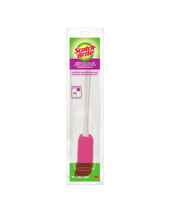 Características:O novo limpador de garrafas e mamadeiras Scotch Brite limpa uniformemente o interior das garrafas e penetra profundamente nos cantos, limpando o que escovas de cerdas falham. O purificador fino e exclusivo cabe na maioria das garrafas, eliminando os resíduos de bebidas limpando com uma maior facilidade. Ainda lava Fácil os cantos sem riscar por ter uma borda chanfrada, possui testes de nível de risco realizados no laboratório Lenco (Brasil)!Detalhes:- Marca: Scotch Brite®;- Modelo: Purificador de Garrafa Scotch-Brite®;- Referência: XE006002630;- Linha: Limpadores;- Cor: Rosa/Incolor;- Tipo de produtos: Palhas de Aço;- Contém: 1 unidade do produto;- Limpa Fácil sem Riscar,- Esponja antimicrobiana,- Limpa mais rápido e uniformemente,- Fácil de armazenar em sua pia ou em um gancho;- Não risca;- Reutilizável.Aplicações sugeridas- Ideal para higienização de garrafas, mamadeiras, garrafas de plástico, garrafas térmicas de aço inoxidável e copos.Medidas:- Dimensões do produto: 30,32 x 5,71cm (CxL).* As especificações podem ser alteradas sem aviso prévio ** Imagem meramente ilustrativa.