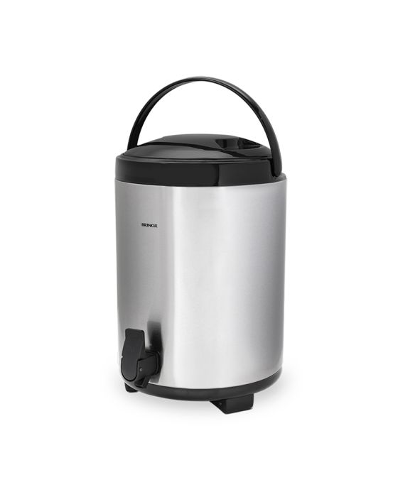 Características:A Garrafa Térmica da Brinox é ideal para eventos ou momentos que necessitam de mobilidade. Possui uma estrutura de base triangular que pode ser dobrada e alças para carregar.Com estrutura de alumínio e aço inoxidável, a garrafa térmica é fácil para limpar e não acumula resíduos. O acionamento é feito através de uma torneira/alavanca que potencializa a pressão e facilita a saída do líquido.Detalhes: - Marca: Brinox;- Modelo: Clássica;- Referência: 1387/101;- Linha: Garrafas Térmicas;- Cor: Inox/Preta;- Capacidade: 7,2L;- Contém: 1 unidade do produto;- Acabamento: Lisa;- Sistema de Servir: Torneira;- 100% inox;- Conserva bebidas quentes ou frias;- Estrutura de base triangular, pode ser dobrada;- Possui dois recipientes para evitar pingos;- Com alça para transporte.Fabricado na China | Validade indeterminada.Instruções de uso:° Colocar bebida:- Vire a tampa para a esquerda, abra-a e tire as tampas internas;- Coloque a bebida lentamente, evitando que ela vaze. A bebida não deve ultrapassar a borda interna;- Coloque as tampas internas. Após o uso coloque a tampa externa, vire-a diretamente e aperte.° Para servir:- Pressione o botão para baixo para abrir;- Pressione o botão para cima para fechar.Recomendações:- Para manter seus produtos bonitos por mais tempo, lave-as com esponja macia e sabão ou detergente neutro após o uso. Produtos abrasivos como palha e outros poderão riscar ou prejudicar o brilho;- Enxágue bem com água quente e seque em seguida para evitar manchas.Composição:- Fabricado em Polipropileno, Aço inoxidável e Alumínio.Medidas:- Dimensões: 31 x 27 x 23cm (CxLxA);- Peso: 1432g.Garantia do fornecedor: 90 dias para vícios ou defeitos de fabricação.* As especificações podem ser alteradas sem aviso prévio ** Imagem meramente ilustrativa.
