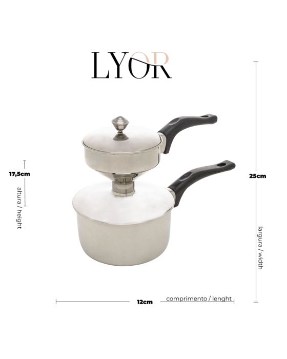 Características:- Praticidade e elegância para o preparo de receitas tradicionais: Desenvolvida para o preparo eficiente do cuscuz tradicional, a Cuscuzeira Individual Lyor alia praticidade, resistência e um acabamento refinado em aço inox. Ideal para cozinhas residenciais ou uso leve em ambientes corporativos (como copas e cozinhas de apoio), proporciona cozimento uniforme e preserva o sabor dos alimentos.- Desempenho funcional e estrutura resistente: Fabricada inteiramente em aço inoxidável de alta qualidade, a cuscuzeira oferece excelente resistência à corrosão e impactos leves do uso cotidiano. Seu design compacto permite o preparo individual de porções, otimizando tempo e energia. A alça ergonômica facilita o manuseio seguro durante o preparo e o transporte.- Versatilidade e uso complementar: Além da função principal no preparo de cuscuz, o produto também pode ser utilizado para cozimento a vapor de legumes e vegetais, promovendo refeições saudáveis e com excelente retenção de nutrientes.- Limpeza e conservação: Para maior durabilidade, recomenda-se a higienização com detergente neutro e esponja macia. Não é indicado para lava-louças, fornos, micro-ondas ou refrigeração. Evitar o uso de produtos abrasivos ou químicos na limpeza.- Aplicações recomendadas: Preparo de cuscuz tradicional (farinha de milho ou arroz); Cozimento de legumes e vegetais no vapor; Uso doméstico ou em cozinhas corporativas com baixo volume de preparo.- Lyor: Lyor é reconhecida por sua linha de utilidades domésticas e soluções práticas para o dia a dia. Com foco em design funcional e materiais duráveis, a marca oferece produtos que aliam estética e eficiência para ambientes residenciais e corporativos.Dimensões do produto:Comprimento: 24cm;Largura: 12,5cm;Altura: 15,5cm;Peso: 450g.* As especificações podem ser alteradas sem aviso prévio ** Imagem meramente ilustrativa.