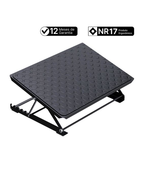 Características:O Apoio para Pés Shark Aço corrige a postura do usuário, auxiliando em uma posição ergonômica mais saudável ao elevar os pés e reduzir a pressão principalmente na coluna cervical, pernas e lombar. Produto altamente resistente produzido em aço carbono e polipropileno, possui até 7 regulagens de altura.O uso contínuo desse produto melhora a circulação, prevenindo varizes, fadiga muscular e inchaço nas pernas. Beneficia a saúde do usuário proporcionando maior bem-estar, aumentando assim o conforto e produtividade.Detalhes:- Marca: Reliza;- Modelo: Shark Aço;- Referência: 010643;- Linha: Apoio para pés;- Cor: Preto;- Contém: 1 unidade do produto;- Possui certificação NR17;- Com sapatas antiderrapantes;- Regula de 5,8cm até 24cm;- Possui mecanismo de gangorra sem trava para melhor ajuste.Composição:- Produzido em aço carbono.Medidas:- Dimensões do produto sem embalagem: 42,5 x 29 x 7,3cm (CxLxA);- Dimensões do produto com embalagem: 44 x 31,5 x 7,5cm (CxLxA);- Peso sem embalagem: 2,45kg;- Peso com embalagem: 2,62kg.*As especificações podem ser alteradas sem aviso prévio ** Imagem meramente ilustrativa.