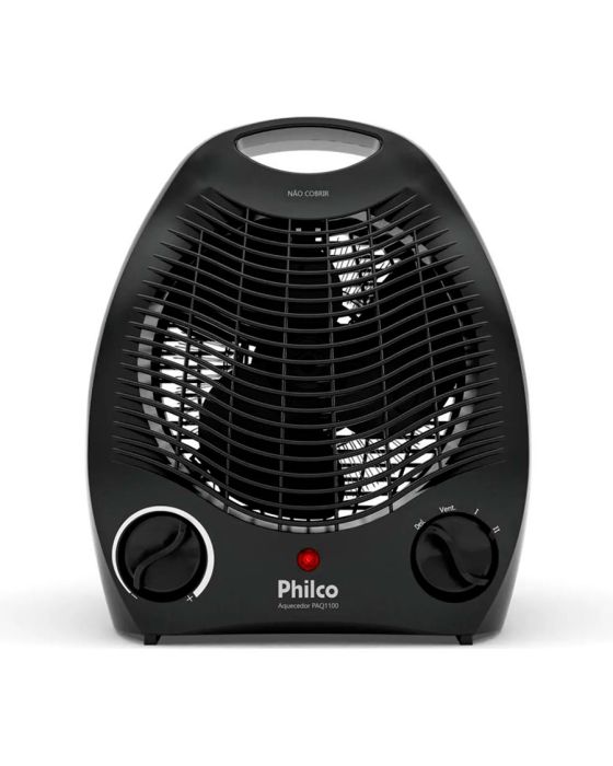 Características:Nada melhor que um ambiente quentinho nos dias frios e refrescantes no calor, não é mesmo? Para isso, conte com o Aquecedor Philco 2 em 1 PAQ1100 3 Níveis de Temperatura! Além de leve e compacto, que permite ser levado para diferentes ambientes, ainda é versátil, pois pode ser utilizado como aquecedor e ventilador. Conta ainda com 3 níveis de temperatura para você escolher! Assim, deixe os ambientes mais aconchegantes, de acordo com a sua necessidade, alterando entre Ventilação, Baixa Potência e Alta Potência. E, para ainda mais praticidade, conta com luz indicadora de funcionamento, para identificar quando o Aquecedor Philco estiver ligado, evitando acidentes. Sem contar o cordão elétrico de 1,45m, que garante maior autonomia de movimento e posicionamento do aparelho. Facilite ainda mais seu dia a dia com o Aquecedor Philco 2 em 1 PAQ1100 3 Níveis de Temperatura! Detalhes:- Marca: Philco;- Modelo: PAQ1100;- Linha: Aquecedores;- Cor: Preto;- Tensão: 127V;- Aquecimento: Resistência;- Contém: 1 unidade do produto;- 3 níveis de potência, sendo 1 para ventilação e 2 para aquecimento;- Controle de temperatura;- Luz de funcionamento (vermelha);- Alça para transporte;- Dispositivos de segurança para evitar sobreaquecimento.Benefícios:- 2 em 1: Versátil, pode ser usado como aquecedor e ventilador;- 3 Níveis de Temperatura: Permite escolher a que mais se adequa à sua necessidade: Ventilação, baixa potência e alta potência;- Luz indicadora de funcionamento: Prático e seguro para identificar o aquecedor em funcionamento;- Cordão elétrico com 1,45m: Garante maior autonomia de movimento e posicionamento do aparelho;- Alça para transporte: Leve e compacto, pode ser levado para diferentes ambientes.Energia:- Tensão: 127V;- Potência: 1500W;- Consumo (kW/h): 1,5 kW/h;- Tomada (A): 16A (127V);- Pinos (2 ou 3): 2 pinos.Composição: - Fabricado em Plástico e Metal.Medidas:- Dimensões do produto: 22,5 x 13,5 x 27cm (CxLxA);- Dimensões da embalagem: 21,5 x 13,5 x 25,2cm (CxLxA);- Peso do produto: 0,934kg;- Peso da embalagem: 1,150kg.Conteúdo da embalagem: 1 Aquecedor 2 em 1 PAQ1100 3 Níveis de Temperatura Philco e 1 Manual de Instruções.Garantia do fornecedor: 1 ano contra defeitos de fabricação.* As especificações podem ser alteradas sem aviso prévio ** Imagem meramente ilustrativa.