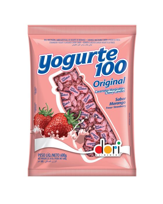 Características:Bala mastigável sabor iogurte de morango colorida artificialmente.Ingredientes:Açúcar, xarope de glicose, gordura vegetal hidrogenada,acidulante ácido cítrico, emulsificantes mono e diglicerídeos de ácidos graxos e lecitina de soja, aromatizante e coranteartificial vermelho 40. NÃO CONTÉM GLÚTEN.INFORMAÇÃO SOBRE ALERGÊNICOS: contém derivado de soja e pode contertraços de amendoim e corante artificial amarelo tartrazina Contém Lactose* As especificações podem ser alteradas sem aviso prévio** Imagem meramente ilustrativa.