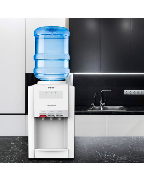 Características:Com o Bebedouro 3 em 1 PBE07CBQF Philco, será possível ter água natural, gelada ou quente a qualquer momento do dia, proporcionando maior bem estar para a família, clientes ou colaboradores, este produto é equipado com refrigeração por compressor, o que garante água gelada por um tempo maior, além da durabilidade ser superior!Esse Bebedouro utiliza gás R134a no sistema de refrigeração, que não contém CFC sendo ecologicamente correto. Ele conta também com sistema perfurador de garrafão, ou seja, permite a colocação do galão sem precisar retirar o lacre, o que evita os indesejáveis derramamentos. Desenvolvido com grande capacidade de galões de 10 ou 20 litros e bandeja coletora removível, coleta a água e facilita a limpeza. Já a luz indicadora do produto, indica o seu funcionamento. Cuide da sua saúde e hidrate o seu corpo com qualidade, para isso, conte com o melhor, Bebedouro 3 em 1 Philco PBE07CBQF 20L! Detalhes:- Marca: Philco;- Modelo: 3 em 1;- Referência: PBE07CBQF;- Linha: Bebedouros;- Cor: Branco;- Tensão: 127V;- Potência 670W;- Capacidade: Galões de 10 e 20 Litros;- Tipo instalação: Bancada;- Contém: 1 unidade do produto;- Sistema de refrigeração: Compressor;- Funções: Água Natural, Gelada e Quente;- Sistema perfurador de garrafão;- Bandeja coletora de água removível;- Dreno para remoção de água e limpeza;- Não contém CFC- Gás refrigerante R134a.Indústria Brasileira. | Validade: Indeterminado.Benefícios:- Refrigeração por compressor: Gela mais e muito mais rápido.- Bandeja removível: Bandeja coletora de água removível, facilita a limpeza.- Sistema perfurador de garrafão: Sistema perfurador de galão: permite a colocação do galão sem precisar retirar o lacre, evitando derramamentos.- Luz indicadora de funcionamento: Indica o funcionamento do produto.Capacidade e vazão:- Capacidade de refrigeração de 1,3L/h;- Vazão de água gelada e quente: 2,0L/min;- Vazão de água natural 2,5L/min.Temperatura:- Temperatura de água gelada 6-12°C (pode variar de acordo com a temperatura ambiente);- Temperatura de água quente 80-85°C (pode variar de acordo com a temperatura ambiente).Energia:- Tensão: 127V;- Potência: 670W;- Consumo de energia mês (kWh/mês): 10,0 kW/h;- Eficiência energética (kW/l): 0,09 kW/l;- Tomada (A): 10A (127V);- Pinos (2 ou 3): 3 pinos;- Classe A em eficiência energética.Medidas:- Dimensões do produto: 33,5 x 31,5 x 53cm (CxLxA);- Dimensões da embalagem: 36 x 35,5 x 57cm (CxLxA);- Peso do produto: 8,815;- Peso da embalagem: 9,595kg.Conteúdo da embalagem: 1 Bebedouro 3 em 1 20L PBE07CBQF Philco e 1 Manual de instruções.Garantia do fornecedor: 1 ano contra defeitos de fabricação.* As especificações podem ser alteradas sem aviso prévio ** Imagem meramente ilustrativa.