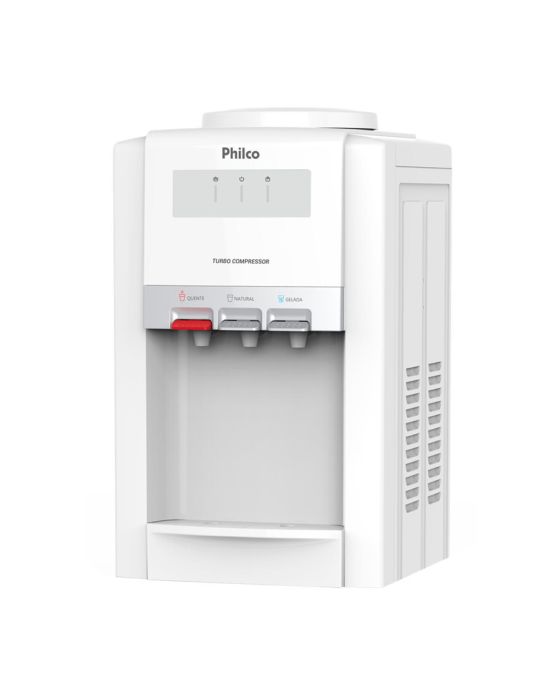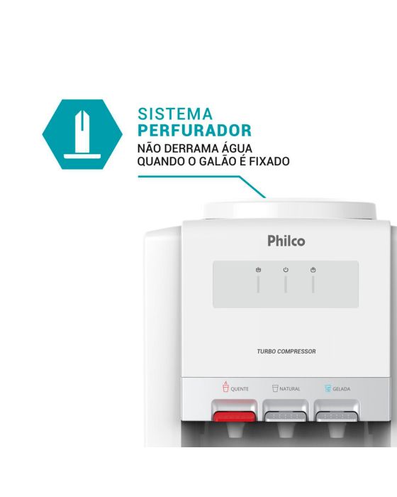 Características:- Desempenho superior com refrigeração por compressor: O Bebedouro 3 em 1 Philco PBE07CBQF oferece uma solução eficiente para ambientes que exigem praticidade, desempenho e robustez. Equipado com sistema de refrigeração por compressor, proporciona água gelada com maior rapidez e estabilidade térmica, mesmo sob altas temperaturas ambientes. Ideal para residências, escritórios, clínicas, recepções e ambientes corporativos com fluxo constante de pessoas.- Três temperaturas para maior versatilidade: O modelo oferece abastecimento de água nas opções natural, gelada (6°C a 12°C) e quente (80°C a 85°C), atendendo diferentes necessidades como preparo de bebidas instantâneas, consumo direto e uso culinário. A capacidade de refrigeração é de 1,3L/h e a vazão média de água varia entre 2,0L/min (gelada/quente) e 2,5L/min (natural), assegurando fluxo contínuo e rápido.- Funcionalidade com sistema perfurador e bandeja removível: Dispensa a retirada do lacre do galão graças ao sistema perfurador integrado, evitando respingos e otimizando o reabastecimento. Conta com bandeja coletora de água removível, facilitando a limpeza e a manutenção diária. O dreno traseiro permite o escoamento completo da água interna para higienização.- Eficiência energética e segurança ambiental: Opera com potência de 620W, consumo médio de 7,5kWh e utiliza gás refrigerante R134a, que não contém CFC, tornando o equipamento ecologicamente responsável. Compatível com tomadas de 220V e corrente de 10A com plugue de 3 pinos, conforme o novo padrão brasileiro.- Design compacto e moderno: Com estrutura na cor branca e dimensões otimizadas, se adapta a diferentes ambientes sem comprometer o espaço. A luz indicadora de funcionamento contribui para o monitoramento do equipamento em tempo real.- Marca confiável em eletrodomésticos: A Philco é referência em eletrodomésticos de alto desempenho, reconhecida por sua inovação, durabilidade e compromisso com a qualidade.- Dimensões do produto:Comprimento: 31,5cmLargura: 33,5cm;Altura: 53cm;Peso: 8,815 kg.- Conteúdo da embalagem: 1 Bebedouro 3 em 1 20L PBE07CBQF Philco e 1 Manual de instruções.- Garantia do fornecedor: 1 ano contra defeitos de fabricação.* As especificações podem ser alteradas sem aviso prévio ** Imagem meramente ilustrativa.
