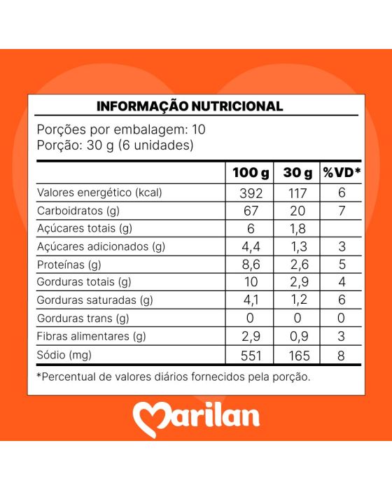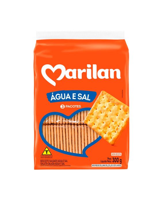 Características:- Biscoito leve com formulação equilibrada e crocância característica: O Biscoito Marilan Cracker Água e Sal foi desenvolvido com uma formulação precisa que garante textura crocante, estrutura estável e um sabor suave e equilibrado, característico desse tipo de biscoito. Produzido com ingredientes selecionados, apresenta resistência adequada para consumo direto e também para aplicações culinárias que exigem manipulação sem perda da integridade física.- Versatilidade para consumo diário e diferentes preparações: A embalagem de 300 g contém três pacotes internos, oferecendo praticidade, melhor conservação do frescor e porções ideais para uso doméstico ou corporativo. Sua estrutura firme permite que o biscoito seja consumido puro em lanches rápidos ou como base para acompanhamentos, pastas, frios e patês, garantindo desempenho consistente em diferentes formas de utilização.- Textura crocante com sabor suave de água e sal: O perfil sensorial destaca sua crocância marcante combinada a um sabor neutro e levemente salgado, tornando o produto ideal para consumo com bebidas quentes, frias ou como complemento em pequenas refeições. Essa combinação agrada consumidores que buscam um item leve, versátil e de baixa interferência no paladar, permitindo harmonização com diversos alimentos.- Indicado para lanches, recepções e composições gastronômicas: Graças à sua funcionalidade, o Biscoito Marilan Cracker Água e Sal é adequado para coffee breaks, recepções, cestas de produtos e uso em mesas de aperitivos. Seu formato padronizado e textura estável facilitam aplicações em preparações salgadas e montagens culinárias, garantindo praticidade no uso cotidiano.- Sobre a marca Marilan: A Marilan é uma das maiores marcas de biscoitos do Brasil, reconhecida pela ampla variedade de produtos e pela consistência na entrega de qualidade, sabor e custo-benefício.- Ingredientes: Farinha de trigo enriquecida com ferro e ácido fólico, gordura vegetal (palma), açúcar invertido, amido de milho, extrato de malte, sal, açúcar, fermentos químicos bicarbonato de amônio, bicarbonato de sódio e difosfato dissódico, acidulante ácido láctico, melhorador de farinha protease. espécie doadora do gene: agrobacterium tumefaciens, bacillus thuringiensis, zea mays.- Informação nutricional e alergênicos:Contém glúten.Alérgicos: Contém derivados de trigo. Pode conter soja, aveia, leite, centeio, cevada e amendoim.- Dimensões da embalagem:Comprimento: 17cm; Largura: 11,5cm; Altura: 5,5cm;Peso: 330g.* As especificações podem ser alteradas sem aviso prévio ** Imagem meramente ilustrativa.