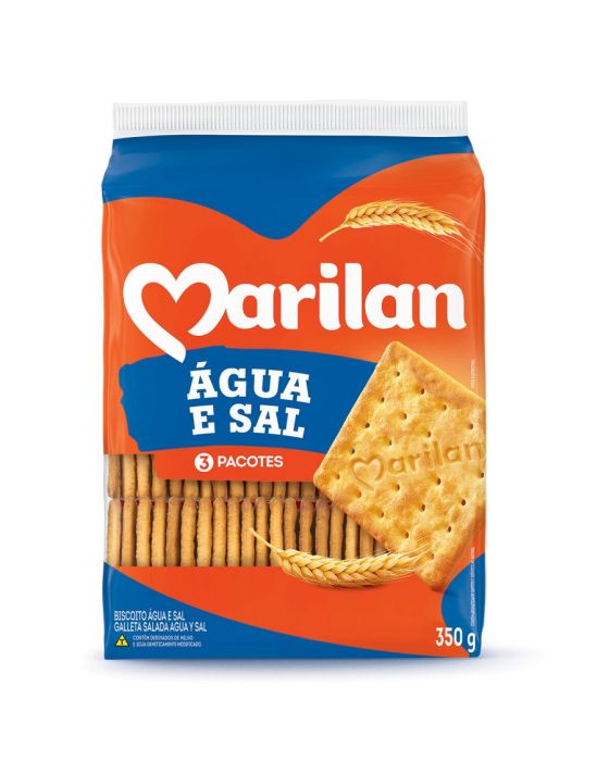 Caracteristicas:Os tradicionais Água e Sal Marilan são delícias que combinam perfeitamente com o café da manhã ou da tarde. - Marca: Marilan - Peso: 350g - Sabor: Água e SalIngredientes:Farinha de Trigo Fortificada com Ferro e Ácido Fólico, Gordura Vegetal (Soja, Palma), Amido, Extrato de Malte, Açúcar Invertido, Sal, Fermento Biológico, Fermento Químico , Bicarbonato de Sódio (INS 500ii), Acidulante Ácido Láctico (INS 270), Melhoradores de Farinha Protease (INS 1101 i) e Metabissulfito de Sódio (INS 223) e Enzima Xilanase.CONTÉM GLÚTEN.Alérgicos: Contém traços de leite ou derivados, nozes, amendoim e coco.Conservar em local seco, fresco e inodoro. Após aberta a embalagem, manter o produto em recipiente tampado em local fresco.* As especificações podem ser alteradas sem aviso prévio ** Imagem meramente ilustrativa / acessórios da foto apenas pra composição da ambientação, não acompanham o produto.