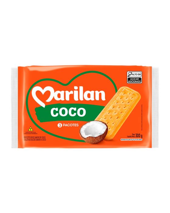 Características:- Biscoito doce com textura crocante e sabor clássico de coco: O Biscoito Coco 300 g Marilan foi desenvolvido para oferecer uma experiência de consumo marcante, combinando leveza, crocância e o sabor característico do coco. A formulação equilibrada utiliza ingredientes selecionados para garantir uniformidade na textura e um perfil sensorial suave, ideal para quem busca um biscoito doce tradicional e versátil para o dia a dia.- Embalagem com porções internas práticas para conservação e uso contínuo: A embalagem contém três pacotes internos que facilitam o consumo gradual, preservando a crocância e evitando o ressecamento do produto após aberto. Esse formato é indicado para uso doméstico, rotinas corporativas e composições gastronômicas, proporcionando praticidade no armazenamento e distribuição.- Textura leve com sabor de coco de alta aceitação: O produto apresenta massa delicada, assada e crocante, com aroma e sabor de coco bem definidos. Sua estrutura é ideal para acompanhar bebidas quentes, servir em recepções, compor lanches rápidos ou ser utilizada em sobremesas que exigem base crocante, como tortas e pavês.- Indicado para pausas, cafés e recepções diversas: O Biscoito Coco Marilan é adequado para consumo em ambientes corporativos, cafés da manhã, pausas ao longo do dia, cestas temáticas e ocasiões de recepção. Seu perfil sensorial agrada a diferentes faixas de público, tornando-o uma opção versátil e de ampla aceitação.- Sobre a marca Marilan: A Marilan é uma das maiores marcas de biscoitos do Brasil, reconhecida pela ampla variedade de produtos e pela consistência na entrega de qualidade, sabor e custo-benefício.- Ingredientes: Farinha de trigo enriquecida com ferro e ácido fólico, açúcar, gordura vegetal (palma), amido de milho*, açúcar invertido, sal, emulsificante lecitina de soja*, aromatizante, fermentos químicos bicarbonato de sódio e bicarbonato de amônio, acidulante ácido láctico, melhoradores de farinha metabissulfito de sódio e proteases aspergillus oryzae var. *espécie doadora do gene: agrobacterium tumefaciens, bacillus thuringiensis, zea mays.- Informação nutricional e alergênicos:Contém glúten.Alérgicos: Contém derivados de trigo e soja. Pode conter leite, centeio, cevada e amendoim.- Dimensões da embalagem:Comprimento: 24cm;Largura: 13cm;Altura: 3cm;Peso: 317g.* As especificações podem ser alteradas sem aviso prévio ** Imagem meramente ilustrativa.