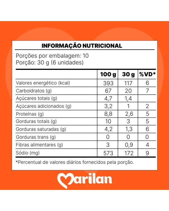 Características:- Biscoito leve com formulação crocante e sabor equilibrado: O Biscoito Marilan Cream Cracker é produzido com uma formulação cuidadosamente balanceada para garantir textura crocante, leve e uniforme, preservando a estrutura do produto mesmo em aplicações culinárias ou durante o consumo direto. Sua composição proporciona um sabor suave, característico dos crackers tradicionais, permitindo versatilidade em diferentes combinações e momentos do dia.- Versatilidade para consumo diário e diferentes preparações: A embalagem de 300 g conta com três pacotes internos, proporcionando praticidade, melhor conservação e facilidade de uso em ambientes domésticos ou corporativos. Sua estrutura firme permite consumo puro em lanches rápidos ou uso como base para acompanhamentos como patês, pastas, queijos, frios e geleias, garantindo desempenho consistente em aplicações salgadas ou leves.- Textura crocante com sabor clássico cream cracker: O perfil sensorial destaca sua crocância fina e o sabor equilibrado típico dos cream crackers, com leve teor salino e aroma neutro, ideal para quem busca um biscoito versátil e de baixa interferência no paladar. Essa característica amplia sua compatibilidade com bebidas quentes, frias e preparações gastronômicas diversas.- Indicado para lanches, recepções e composições gastronômicas: Por sua funcionalidade e textura estável, o Biscoito Marilan Cream Cracker é adequado para coffee breaks, recepções, cestas de produtos e mesas de aperitivos. Seu formato padronizado e resistência estrutural facilitam o uso em porções individuais e montagens culinárias, tornando-o uma opção prática para o dia a dia.- Sobre a marca Marilan: A Marilan é uma das maiores marcas de biscoitos do Brasil, reconhecida pela ampla variedade de produtos e pela consistência na entrega de qualidade, sabor e custo-benefício.- Ingredientes: Farinha de trigo enriquecida com ferro e ácido fólico, gordura vegetal (palma), açúcar invertido, amido de milho, extrato de malte, sal, açúcar, fermentos químicos bicarbonato de amônio, bicarbonato de sódio e difosfato dissódico, acidulante ácido láctico, melhorador de farinha protease. espécie doadora do gene: agrobacterium tumefaciens, bacillus thuringiensis, zea mays.- Informação nutricional e alergênicos:Contém glúten.Alérgicos: Contém derivados de trigo e cevada. Pode conter soja, aveia, leite, centeio e amendoim.- Dimensões da embalagem:Comprimento: 17,7cm; Largura: 11,7cm; Altura: 5,7cm;Peso: 303g.* As especificações podem ser alteradas sem aviso prévio ** Imagem meramente ilustrativa.