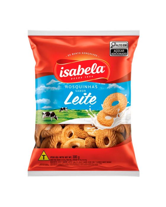 Características:Seja no café da manhã, no café da tarde ou no lanche do dia, a Rosquinha Leite Isabela é um ótimo acompanhante para este momento!Detalhes:- Marca: Isabela;- Linha: Biscoitos;- Sabor: Leite- Peso: 300g;- Contém: 1 unidade do produto.Ingredientes:- Farinha de trigo enriquecida com ferro e ácido fólico, açúcar, gordura vegetal*, açúcar invertido, sal, fermentos químicos: bicarbonato de amônio, bicarbonato de sódio e pirofosfato ácido de sódio, aromatizantes e emulsificante lecitina de soja*. *Espécies doadoras do gene do óleo de soja da gordura vegetal e da lecitina de soja: Bacillus thuringiensis, Streptomyces viridochromogenes, Agrobacterium tumefaciens, Agrobacterium sp, Arabdopsis thalianaALÉRGICOS: CONTÉM DERIVADOS DE SOJA E DE TRIGO. PODE CONTER AVEIA, CENTEIO, CEVADA, LEITE E TRITICALE.CONTÉM GLÚTEN. CONTÉM LACTOSE.* As especificações podem ser alteradas sem aviso prévio ** Imagem meramente ilustrativa.