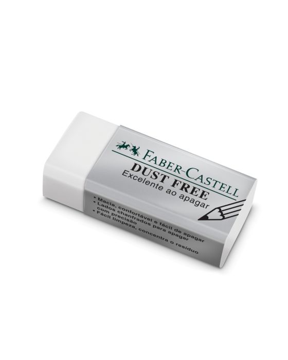 Características:Produto de excelente desempenho e alta durabilidade. A borracha Faber-Castell conta com a tecnologia Dust Free: macia, confortável e fácil de apagar. Os lados são chanfrados para apagar com precisão e o produto é excelente ao apagar. A borracha vem no tamanho pequeno, perfeita para armazenamentos compactos.Detalhes:- Marca: Faber-Castell;- Modelo: Borracha Dust Free Pequena;- Referência: SM/187137;- Linha: Borrachas;- Cor: Branca;- Contém: 1 blister com 2 unidades do produto;- Alto desempenho e durabilidade;- Tecnologia Dust Free: macia, confortável e fácil de apagar;- Excelentes ao apagar;- Lados chanfrados para apagar com precisão;- Fácil limpeza e concentra o resíduo;- Este produto pode ser reciclado.Composição:- Composição Borracha: Resinas sintéticas, plastificantes, cargas e pigmentos;- Composição Cinta: Papel cartão e tinta off set.ATENÇÃO! NÃO RECOMENDÁVEL PARA CRIANÇAS MENORES DE 3 (TRÊS) ANOS POR CONTER PARTE(S) PEQUENA(S) QUE PODE(M) SER ENGOLIDA(S) OU ASPIRADA(S).* As especificações podem ser alteradas sem aviso prévio ** Imagem meramente ilustrativa.