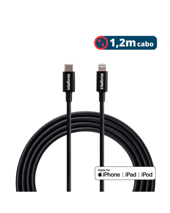 Características:- Cabo USB-C para Lightning homologado Apple: O Cabo USB-C para Lightning Intelbras EUCL12PP foi desenvolvido para carregamento rápido e transferência segura de dados em dispositivos Apple compatíveis com conector Lightning. Possui homologação oficial Apple e conector Lightning C94, garantindo total compatibilidade e funcionamento confiável. Quando utilizado com carregadores USB-C Power Delivery de 18 W ou superior, permite recarregar até 50% da bateria do iPhone em aproximadamente 30 minutos, oferecendo alta eficiência energética.- Alta velocidade de sincronização e maior comodidade no uso: Compatível com o padrão USB 2.0, permite transferência de dados de até 480 Mbps, facilitando o envio e backup de arquivos, fotos, vídeos e documentos entre dispositivos Apple e computadores. O comprimento de 1,2 metro proporciona maior flexibilidade e conforto no uso diário, ideal para utilização em mesas, estações de trabalho, veículos e carregadores de parede.- Construção reforçada com blindagem interna e revestimento em PVC: Fabricado com revestimento externo em policloreto de vinila (PVC), blindagem interna em folha de alumínio e malha de cobre trançado, oferece maior proteção contra interferências e desgaste. A bitola de 24AWG para energia e 30AWG para dados garante desempenho estável, enquanto os conectores com capa em elastômero termoplástico (TPE) aumentam a resistência mecânica e a durabilidade do cabo.- Indicado para carregamento rápido e sincronização de dispositivos Apple: Recomendado para uso com phones, Ipads iPads: da 5ª à 8ª geração, iPad Pro (várias versões), iPad mini e iPad Air, iPods: touch (6ª e 7ª geração) com entrada Lightning, é ideal para carregamento rápido com fontes USB-C Power Delivery, além de sincronização com notebooks e computadores. - Sobre a marca Intelbras: A Intelbras é referência nacional em soluções tecnológicas, reconhecida pela confiabilidade, inovação e rigor técnico em seus produtos.- Itens inclusos na embalagem: 1 cabo USB-C para lightning.- Garantia do fornecedor: 3 anos contra defeitos de fabricação.- Dimensões da embalagem:Comprimento: 16cm;Largura: 8,5cm;Altura: 3,5cm;Peso: 56g.* As especificações podem ser alteradas sem aviso prévio ** Imagem meramente ilustrativa.