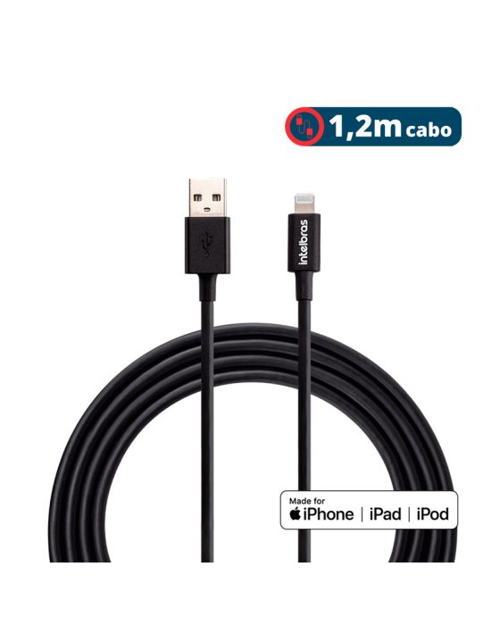 Características:- Cabo USB para Lightning homologado Apple: O Cabo USB para Lightning Intelbras EUAL12PP foi projetado para realizar carregamento e transferência de dados em dispositivos Apple com segurança e eficiência. Possui conector Lightning de 8 pinos com homologação Apple, garantindo compatibilidade total e funcionamento confiável com iPhones, iPads e iPods, mesmo após atualizações do sistema. Suporta corrente de até 2,4 A, proporcionando recarga rápida quando utilizado com fontes compatíveis.- Alta velocidade de transferência e uso versátil no dia a dia: Compatível com o padrão USB 2.0, permite transferência de dados de até 480 Mbps, facilitando a sincronização de arquivos como fotos, vídeos, músicas e documentos entre dispositivos e computadores. O comprimento de 1,2 metro oferece maior liberdade e conforto durante o uso, sendo ideal para carregamento em mesas, estações de trabalho, veículos ou próximos à rede elétrica.- Construção resistente com revestimento em PVC e conectores reforçados: Fabricado com revestimento em policloreto de vinila (PVC) e capa dos conectores em elastômero termoplástico (TPE), oferece maior resistência contra torções, desgaste e uso contínuo. Sua bitola de 24AWG para energia e 30AWG para dados garante estabilidade elétrica e desempenho consistente, aumentando a durabilidade e a vida útil do cabo.- Indicado para carregamento e sincronização de dispositivos Apple compatíveis: Recomendado para uso com iPhones do modelo 6s até 12 Pro, iPads e iPods com conector Lightning, é ideal para carregamento em carregadores de parede, notebooks, computadores, power banks e carregadores veiculares. Oferece uma solução prática e segura tanto para uso doméstico quanto profissional.- Sobre a marca Intelbras: A Intelbras é referência nacional em soluções tecnológicas, reconhecida pela confiabilidade, inovação e rigor técnico em seus produtos.- Itens inclusos na embalagem: 1 cabo lightning.- Garantia do fornecedor: 3 anos contra defeitos de fabricação.- Dimensões da embalagem:Comprimento: 16cm;Largura: 8,5cm;Altura: 3,5cm;Peso: 56g.* As especificações podem ser alteradas sem aviso prévio ** Imagem meramente ilustrativa.