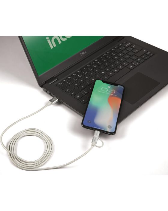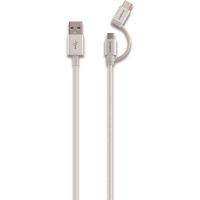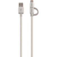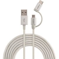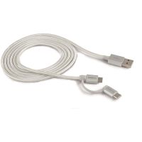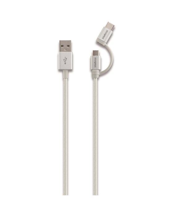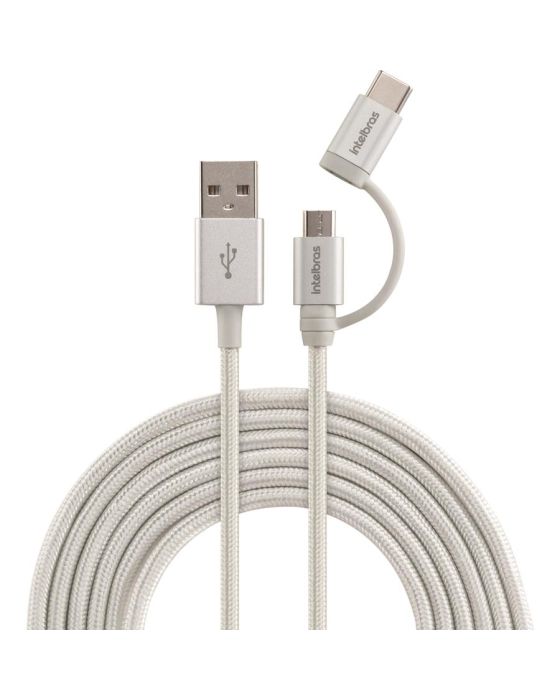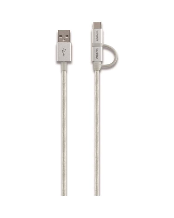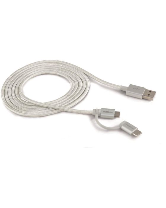 Cabo Para Smartphone 2 Em 1 Usb Para Micro Usb + Usb-c 1,5m Nylon Branco Euabc 15nb Intelbras