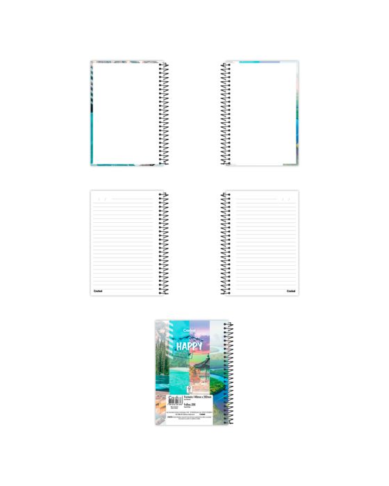 Caracteristicas:- 200 folhas- Espiral- Formato: 1/4 (140 x 202mm)- Capa dura (modelos sortidos)Capas sortidas, será enviado de acordo com a disponibilidade do estoque. Não é possível escolher uma capa específica.* As especificações podem ser alteradas sem aviso prévio ** Imagem meramente ilustrativa