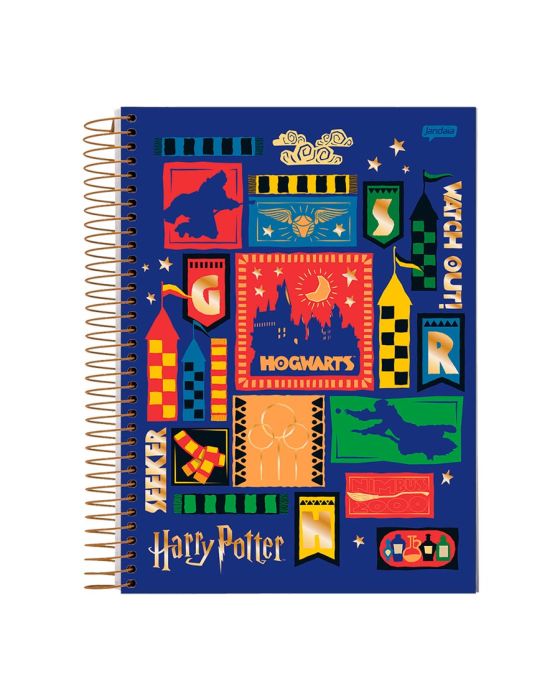Características:Harry Potter é uma série de sete romances de fantasia escrita pela autora britânica J. K. Rowling. A série narra as aventuras de um jovem chamado Harry James Potter, que descobre aos 11 anos de idade que é um bruxo ao ser convidado para estudar na Escola de Magia e Bruxaria de Hogwarts. O mundo mágico encantou os corações e a imaginação das pessoas ao redor do mundo há mais de vinte anos, e o fandom continua forte! Este mundo exclusivamente mágico se destacou e está tão envolvido na psiques de nossos fãs, que não é surpresa que nossa pesquisa mostre que Harry Potter é a franquia favorita nº 1 entre os Benchamarks Competitivos.Detalhes:- Marca: Jandaia;- Modelo: Harry Potter;- Referência: 63598-25;- Linha: Cadernos Espiral;- Tipo: 1/4;- Capa: Capa Dura com laminação fosca e Hot Stamping (Estampas sortidas);- Contra capa: Contra capa simples;- Quantidade de folhas: 80 folhas;- Quantidade de matérias: 1 matéria;- Contém: 1 unidade do produto com 80 folhas;- Formato: 140 x 200mm (14 x 20cm);- Gramatura: 56g/m2;- Cor espiral: Dourado;- Folhas: pautadas na cor cinza decorada;- Cor das folhas: Off White;- Bolsa de papel dupla decorada;- Possui cartela de adesivos decorados funcionais;- Índice/Separador de matérias decorado;- Miolo decorado.Composição; - Capa: Capa em papelão e papel couché;- Folhas Internas: Papel Offset 56g/m2.Medidas:- Formato: 140 x 200mm (14 x 20cm);- Gramatura: 56g/m². Estampas sortidas, será enviado de acordo com a disponibilidade do estoque. Não é possível escolher uma capa específica.* As especificações podem ser alteradas sem aviso prévio ** Imagem meramente ilustrativa.