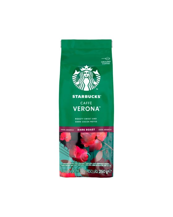 Características:O doce torrado com notas escuras de cacau deste blend, tornam esta xícara de café rica e equilibrada. O café Torrado Moído Starbucks® foi moído para obter a melhor preparação de café!Detalhes:- Marca: Starbucks®.- Modelo: Verona.- Tipo: Torrado Moído.- Peso: 250g- Torra: Escura.- Notas: Doce e torrado com cacau preto.Modo de preparo: - A recomendação da porção de café torrado moído para água é de 10g de café moído Starbucks® para cada 180ml de água, que equivale a 1 xícara de café.Ingredientes:- Embalagem de café torrado moído de 250g.* As especificações podem ser alteradas sem aviso prévio ** Imagem meramente ilustrativa.