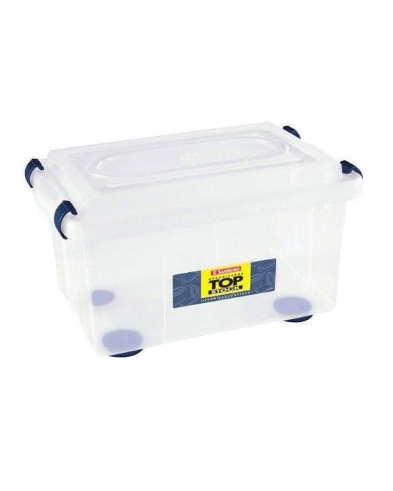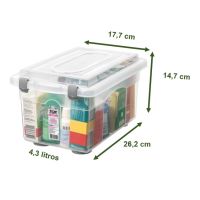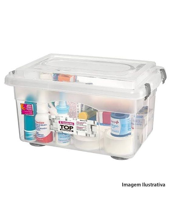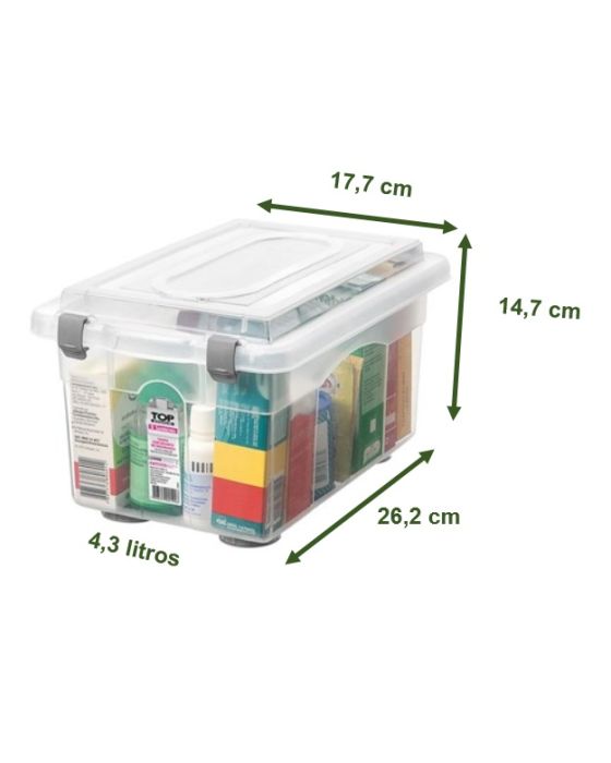 CaracterísticasCom grampos dse fechamento que prendem a tampa firmemente à caixa plástica. Sua transparência permite a visualização do conteúdo, dispensando a etiquetagem externa. Com bases largas, têm melhor apoio e não deixam marcas, já que o peso é melhor distribuído. - Capacidade: 4,3 litros - Cor Cristal - material: Plástico Super resistente - Lavável - Com tampa - Marca Sanremo - Dimensões: 262x177x147mm * As especificações podem ser alteradas sem aviso prévio ** Imagem meramente ilustrativa
