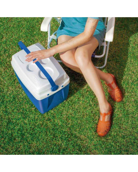 Características:Para acompanhar seu dia na praia, camping ou até mesmo garantir as bebidas geladas e os lanchinhos em longas viagens, a Caixa Térmica 26 Litros da Mor é item indispensável! As Caixas Térmicas Mor possuem parte interna e externa em polipropileno injetado, tampa soprada e contam com isolamento em isopor. Além disso, são desenvolvidas com material 100% virgem, atóxico e sem odor, o que garante a qualidade e a durabilidade do produto. As dimensões internas da Caixa Térmica permitem que sejam armazenadas 35 latinhas de 350ml ou 5 unidades de garrafas pet de 2 Litros deitadas. Para facilitar o transporte, possui uma alça prática para você carregar sempre que desejar garantir as bebidas geladinhas para a reunião com amigos ou familiares!Detalhes:- Marca: Mor;- Referência: 25108171;- Linha: Caixas Térmicas;- Tipo: Portátil;- Cor: Azul/Branco;- Capacidade: 26 Litros (35 latinhas de 350ml / 2 garrafas de 2L);- Contém: 1 unidade do produto;- Tampa com espaço para 2 copos, 1 para garrafas ou jarras e 1 para petiscos.- Alça prática;- Material 100% virgem;- Produto atóxico e sem odor.Indústria Brasileira. | Validade: Indeterminada.Ideal para:- Ideal para conservação de alimentos e bebidas em viagens ou passeios, piqueniques, ou eventos, além de poder ser usada para transporte e conservação de vacinas e medicamentos temporariamente.Uso e Cuidados:- Para melhor desempenho do seu isotérmico, resfrie ou aqueça bebidas/alimentos antes de armazená-lo;- Quando utilizado gelo não é necessário drenar a água, pois ela auxilia na conservação da temperatura;- Evite colocar na sua caixa térmica produtos com temperatura superior a 100°C, pois poderá danificar a mesma;- Não utilizar gelo seco no produto;- Transporte seu isotérmico sempre com a tampa fechada;- Não sente sobre a tampa;- Mantenha o produto longe de fontes de calor;- Não lave o produto em máquinas de lavar louça;- Para melhor conservação da temperatura da caixa, evite abrir a tampa com frequência;- Nunca transporte seu isotérmico contendo recipientes ou garrafas com líquidos quentes apoiado sobre qualquer parte do corpo;Limpeza e conservação:- Utilize um pano úmido com sabão neutro ou detergente;- Nunca utilize produtos abrasivos como esponjas de aço, fibras abrasivas ou similares;- Deixe-o limpo e destampado para melhor ventilação antes de guardar o produto.Composição:- Parte interna e externa: Fabricado em Polipropileno;- Tampa: Fabricado em Polietileno injetado e isolamento térmico em poliestireno expandido.Medidas:- Dimensões do produto: 42,5 x 29 x 38,5cm (CxLxA);- Peso: 1,9kg.Conteúdo da embalagem: 1 Caixa Térmica Azul 26 Litros Mor.Garantia do fornecedor: 3 meses contra defeitos de fabricação.* As especificações podem ser alteradas sem aviso prévio ** Imagem meramente ilustrativa.