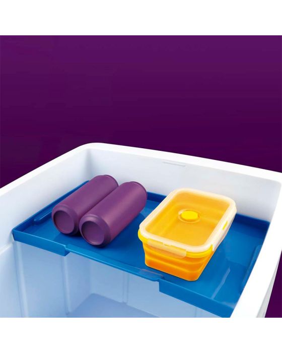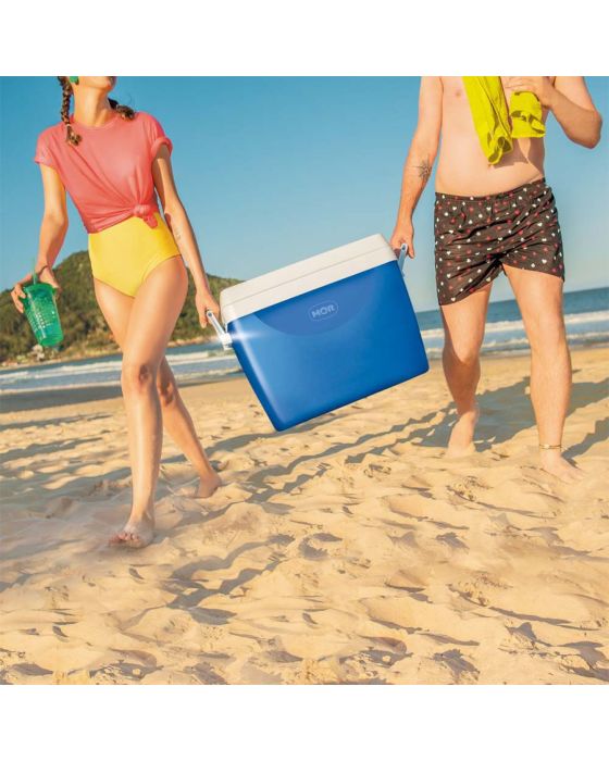Características:Para acompanhar seu dia na praia, camping ou até mesmo garantir as bebidas geladas e os lanchinhos em longas viagens, a Caixa Térmica 75 Litros da Mor é item indispensável! As Caixas Térmicas Mor possuem parte interna e externa em polipropileno injetado, tampa em polietileno e isolamento térmico em poliestireno expandido. Além disso, são desenvolvidas com material 100% virgem, atóxico e sem odor, o que garante a qualidade e a durabilidade do produto. As dimensões internas da Caixa Térmica permitem que sejam armazenadas 110 latinhas de 350ml ou 15 unidades de garrafas pet de 2 Litros. Para facilitar o transporte, possui uma alça prática para você carregar sempre que desejar garantir as bebidas geladinhas para a reunião com amigos ou familiares!Detalhes:- Marca: Mor;- Referência: 25108191;- Linha: Caixas Térmicas;- Tipo: Portátil;- Cor: Azul/Branco;- Capacidade: 75 Litros (110 latinhas de 350ml / 15 garrafas de 2L);- Contém: 1 unidade do produto;- Possui bandeja interna;- Tampa com espaço para 6 copos e 1 para garrafas ou jarras;- Alça prática;- Material 100% virgem;- Produto atóxico e sem odor.Indústria Brasileira. | Validade: Indeterminada.Ideal para:- Ideal para conservação de alimentos e bebidas em viagens ou passeios, piqueniques, ou eventos, além de poder ser usada para transporte e conservação de vacinas e medicamentos temporariamente.Uso e Cuidados:- Para melhor desempenho do seu isotérmico, resfrie ou aqueça bebidas/alimentos antes de armazená-lo;- Quando utilizado gelo não é necessário drenar a água, pois ela auxilia na conservação da temperatura;- Evite colocar na sua caixa térmica produtos com temperatura superior a 100°C, pois poderá danificar a mesma;- Não utilizar gelo seco no produto;- Transporte seu isotérmico sempre com a tampa fechada;- Não sente sobre a tampa;- Mantenha o produto longe de fontes de calor;- Não lave o produto em máquinas de lavar louça;- Para melhor conservação da temperatura da caixa, evite abrir a tampa com frequência;- Nunca transporte seu isotérmico contendo recipientes ou garrafas com líquidos quentes apoiado sobre qualquer parte do corpo;Limpeza e conservação:- Utilize um pano úmido com sabão neutro ou detergente;- Nunca utilize produtos abrasivos como esponjas de aço, fibras abrasivas ou similares;- Deixe-o limpo e destampado para melhor ventilação antes de guardar o produto.Composição:- Parte interna e externa: Fabricado em Polipropileno;- Tampa: Fabricado em Polietileno injetado e isolamento térmico em poliestireno expandido.Medidas:- Dimensões do produto: 64 x 46,8 x 46,7cm (CxLxA);- Peso: 790g.Conteúdo da embalagem: 1 Caixa Térmica Azul 75 Litros Mor.Garantia do fornecedor: 3 meses contra defeitos de fabricação.* As especificações podem ser alteradas sem aviso prévio ** Imagem meramente ilustrativa.