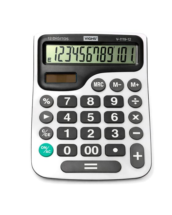Características:- Calculadora de mesa 12 dígitos com visor amplo e dupla alimentação: A Calculadora de Mesa V-1119 da Vighs foi desenvolvida para oferecer praticidade e precisão em cálculos do dia a dia. Com visor de 12 dígitos, proporciona leitura clara dos resultados, sendo indicada para uso em escritórios, comércios, ambientes administrativos e rotinas escolares.- Estrutura ergonômica para uso em mesa: Projetada para uso contínuo sobre superfícies de trabalho, a calculadora possui formato ergonômico e estrutura resistente em plástico. Seu design nas cores branco e preto proporciona aparência moderna e discreta, adequada para diferentes ambientes profissionais.- Funções essenciais para cálculos administrativos: O modelo conta com funções básicas de cálculo, incluindo operações matemáticas fundamentais e função de porcentagem. Também dispõe de memória independente com teclas M+, M- e MRC, permitindo armazenar e recuperar valores durante operações sequenciais. A tecla delete/retorno possibilita corrigir rapidamente números digitados.- Dupla alimentação para maior eficiência energética: A calculadora possui sistema de alimentação híbrido, funcionando por energia solar e por uma pilha AAA de 1,5V (não inclusa). Esse sistema contribui para maior autonomia de uso e eficiência energética. Conta ainda com função Auto Power Off, que desliga automaticamente o equipamento após período de inatividade.- Sobre a marca Vighs: A Vighs atua no segmento de suprimentos para escritório, oferecendo produtos funcionais voltados à organização, cálculo e produtividade em ambientes profissionais e educacionais, com foco em praticidade e bom custo-benefício.- Itens inclusos na embalagem: 1 Calculadora Científica V-1119 Vighs e 2 Pilhas Botões LR1130.- Dimensões do produto: Comprimento: 18cm; Largura: 13,3cm; Altura: 4cm; Peso: 181g.* As especificações podem ser alteradas sem aviso prévio ** Imagem meramente ilustrativa.