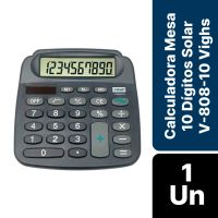 Características:- Eficiência e precisão em cálculos corporativos: A Calculadora de Mesa Vighs V-808-10 é uma solução prática e confiável para empresas que buscam produtividade e agilidade em suas rotinas financeiras, administrativas e comerciais. Desenvolvida para uso sobre a mesa, seu visor LCD inclinado garante melhor visibilidade durante o uso, proporcionando conforto e ergonomia em longas jornadas de trabalho.- Desempenho estável e operação inteligente: Com capacidade para 10 dígitos, a calculadora oferece resultados precisos em cálculos simples e complexos, sendo ideal para atividades de escritório, controle de caixa e análises contábeis. O modelo conta com função Auto Power Off, que desliga o equipamento automaticamente após o uso, economizando energia e aumentando sua durabilidade. Além disso, possui alimentação dupla (painel solar e pilha tipo botão G10), garantindo funcionamento contínuo em qualquer ambiente.- Design funcional e resistente: Fabricada em plástico de alta durabilidade com componentes eletrônicos de qualidade, a Vighs V-808-10 alia leveza e resistência, sendo perfeita para uso intenso no ambiente corporativo. Suas teclas macias e bem espaçadas proporcionam digitação rápida e confortável, reduzindo erros e aumentando a produtividade.- Ideal para diferentes segmentos empresariais: Recomendada para escritórios administrativos, contábeis, bancários, comerciais e educacionais, a calculadora Vighs é indispensável em tarefas como fechamento de caixa, controle financeiro, emissão de relatórios e atividades de ensino. Também é uma excelente opção para kits de escritório corporativos e uso institucional.- Sobre a marca Vighs: A Vighs é uma marca especializada em produtos eletrônicos e acessórios de escritório, reconhecida por oferecer equipamentos com ótimo custo-benefício, desempenho confiável e design funcional. - Itens inclusos na embalagem: 1 calculadora V-808A-10 Vighs e 1 Pilha botão G10.- Dimensões da embalagem: Comprimento: 12cm; Largura: 12cm; Altura: 1,6cm; Peso: 100g.* As especificações podem ser alteradas sem aviso prévio ** Imagem meramente ilustrativa.