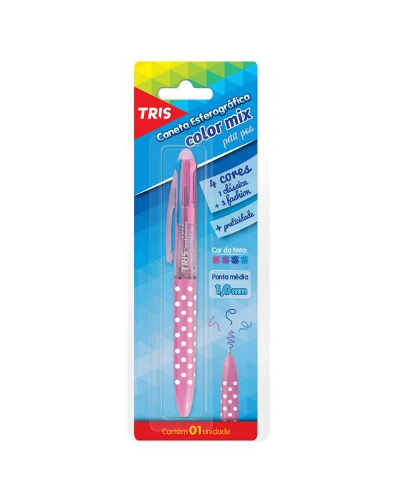 Caneta Esferografica 4 Cores 1.0mm Color Mix Poa Rosa Tris