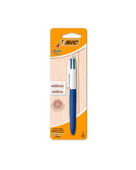 Caneta Esferografica 4 Cores 1.0mm Madeira Bls C/1 Bic Ww